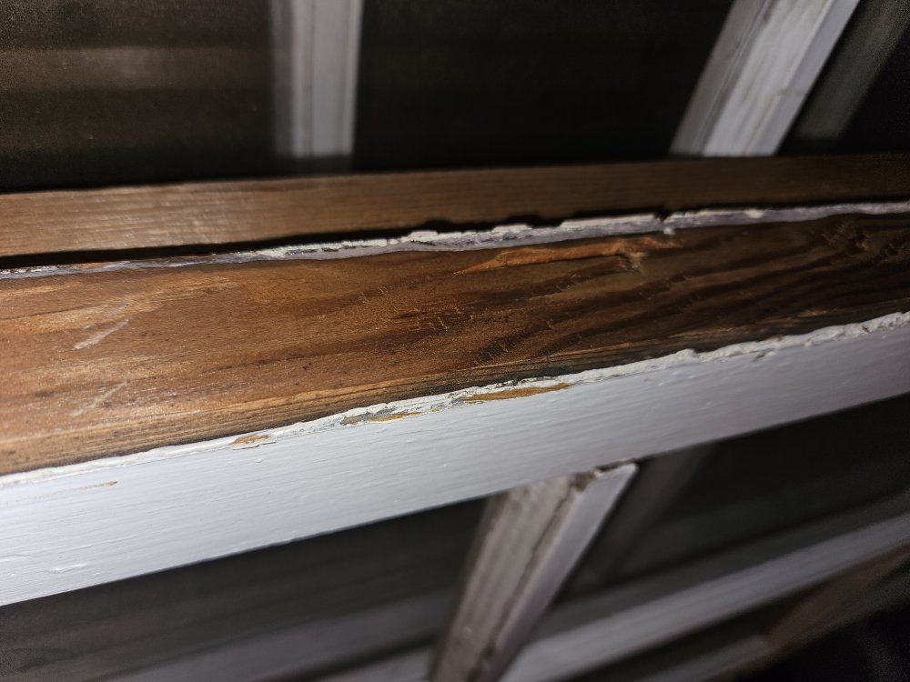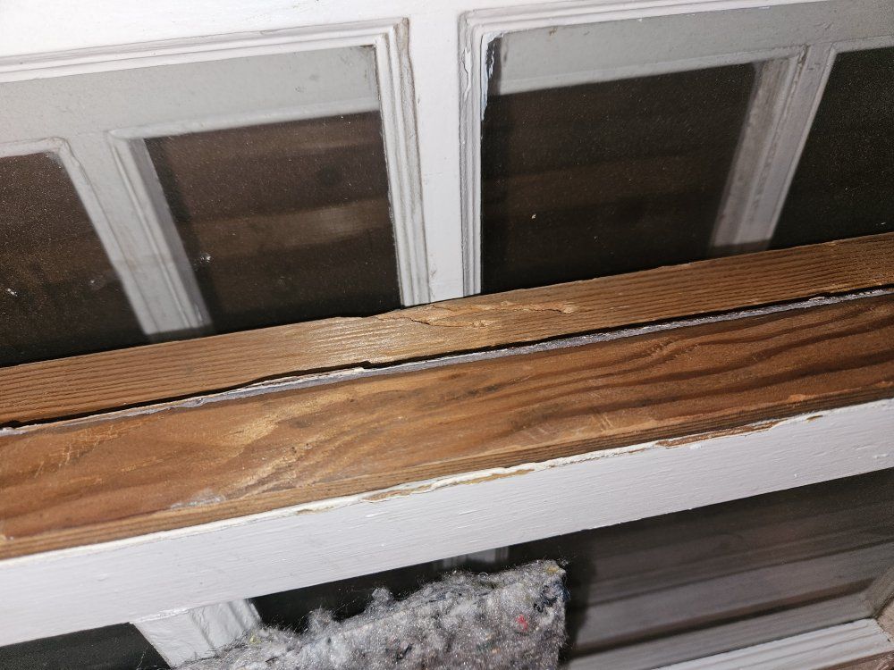 Material: Solid wood (likely vertical grain Douglas Fir or Pine, common for the era). Glass may not be original.