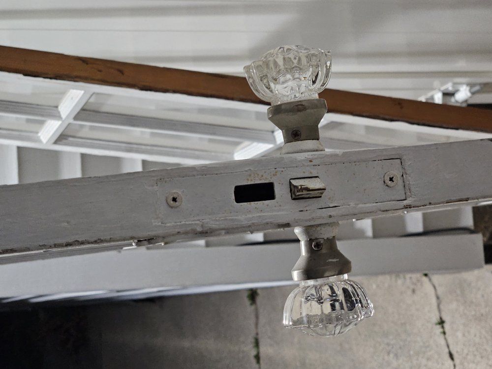 Original Hardware: Features the original crystal knobs & barrel bolt/slide bolt—a major plus for restorers looking for period-correct metalwork.