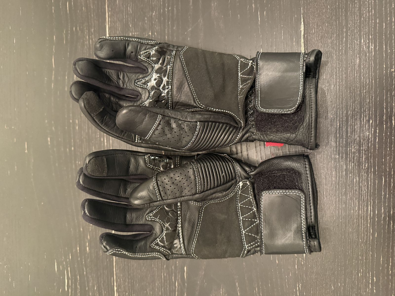 Leather gloves, double-layered palms, carbon fiber knuckles. Originally pd $50, asking $25 OBO.