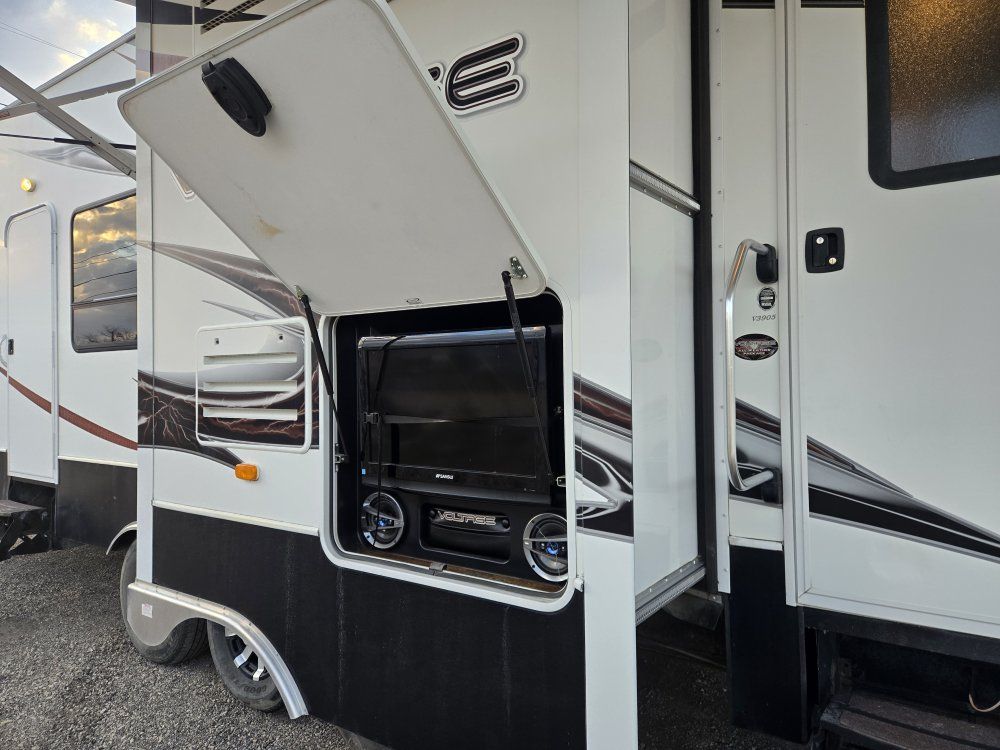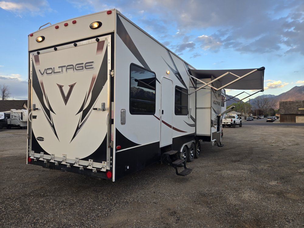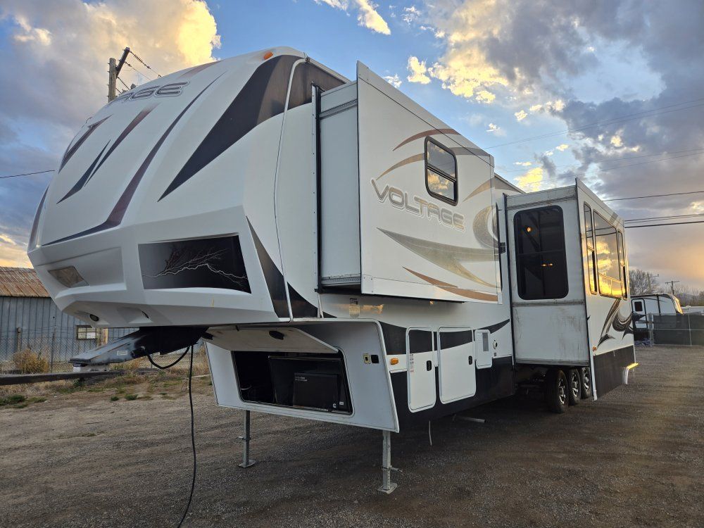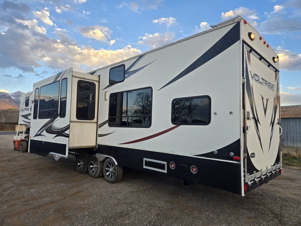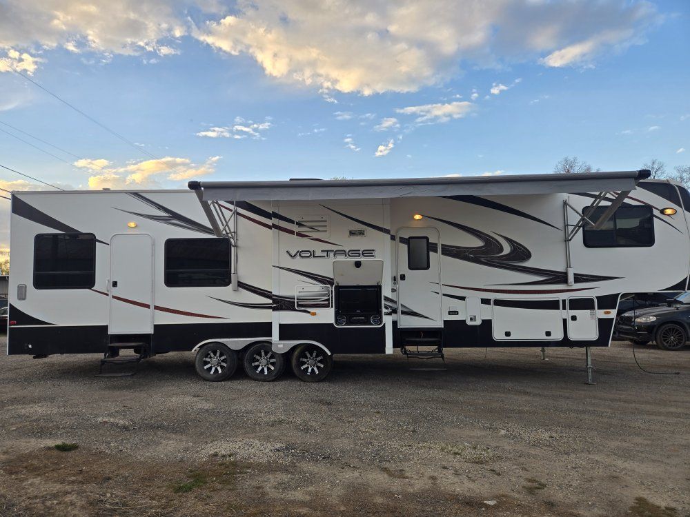 We have a clean title 2012 Keystone Voltage 3905 with a 14 foot garage toy hauler for sale! Everything has been checked out and it is ready to go on its next adventure! Clean title On board generator 400 hours On board fuel station 30 gallons Front and rear electric jacks 14 foot garage Vacuum system Sleeps 8 Brand new awning Roof is solid and has been resealed Tires will need to be replaced 42 feet long Dry weight: 14k pounds GVWR: 18k pounds 160 gallon fresh water 80 gallon gray water 80 gallon black water Lots and lots of storage Ans so much more! Overall, this is a great trailer for the price and it is ready to be taken out by its next owner! We are a small family owned dealer and take pride in our trailers! We only charge a document fee and no other hidden fees! Asking 22,800 or best offer DL #641B