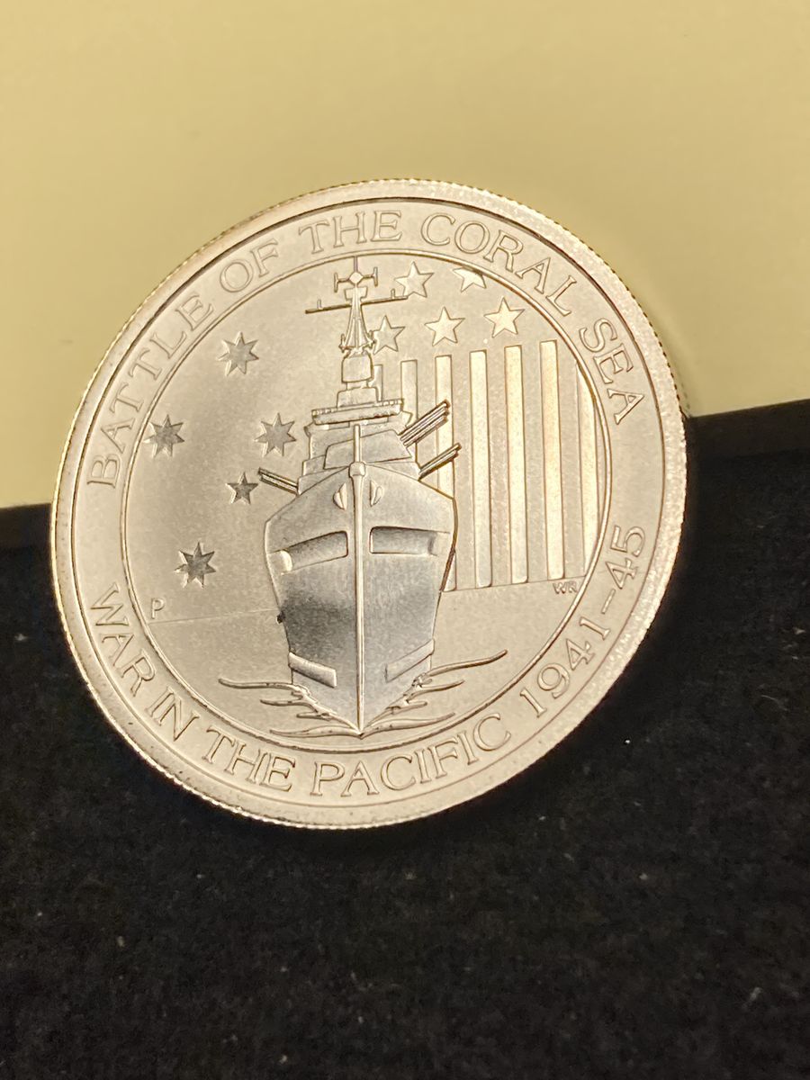 PayPalI have this very nice, near perfect 2014 1/2 ounce 50 cent coin from Australia. It commemorates the Battle of the Coral Sea during WWII. It is 1/2 ounce of .999 fine silver and has a frosty finish. Please see the photos for more details. I am asking $50.00.