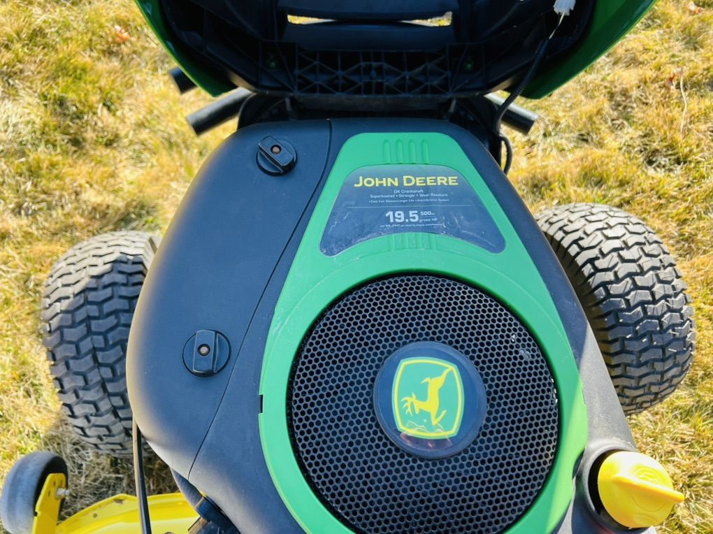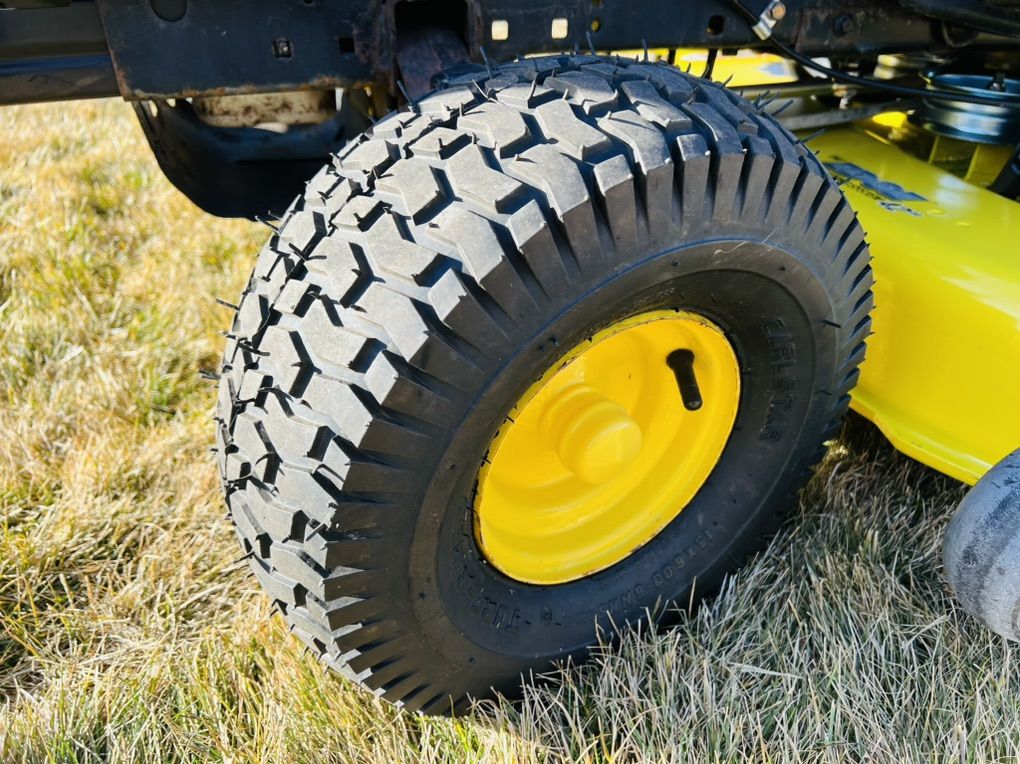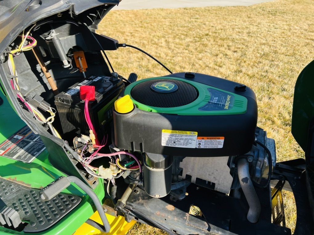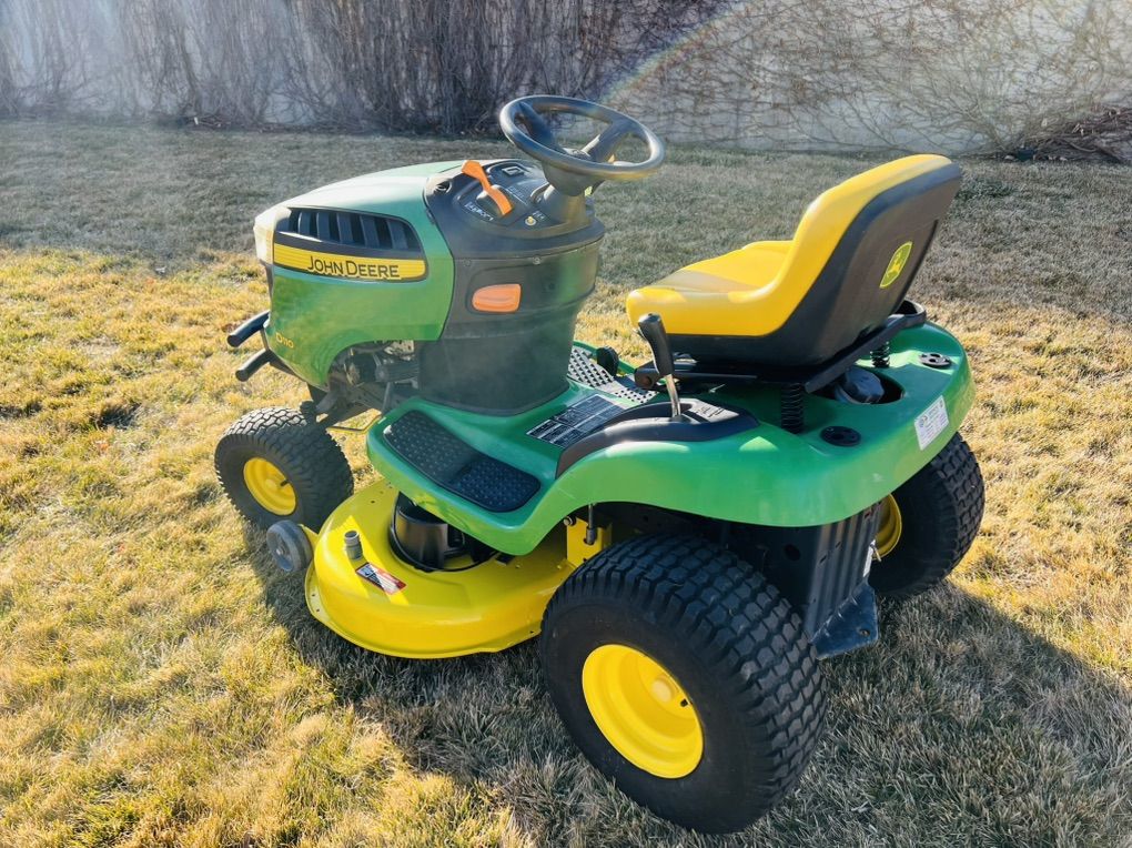 ZelleJohn Deere D110 riding lawn mower with bagger. This machine runs great with no problems. It has been fully serviced from top to bottom including greasing all the zerk fittings, joints, and bearings. The blades are brand new and mowing deck has been perfectly leveled. It has a 19.5HP Briggs & Stratton engine and foot pedal operated hydrostatic transmission. It only has 93 hours of use on it. It comes with a 42” wide mowing deck that’s in fabulous shape along with a bagger/grass catcher. Below is a list of all the parts that have been replaced as a part of the service that was done on it. All parts are genuine John Deere brand parts.