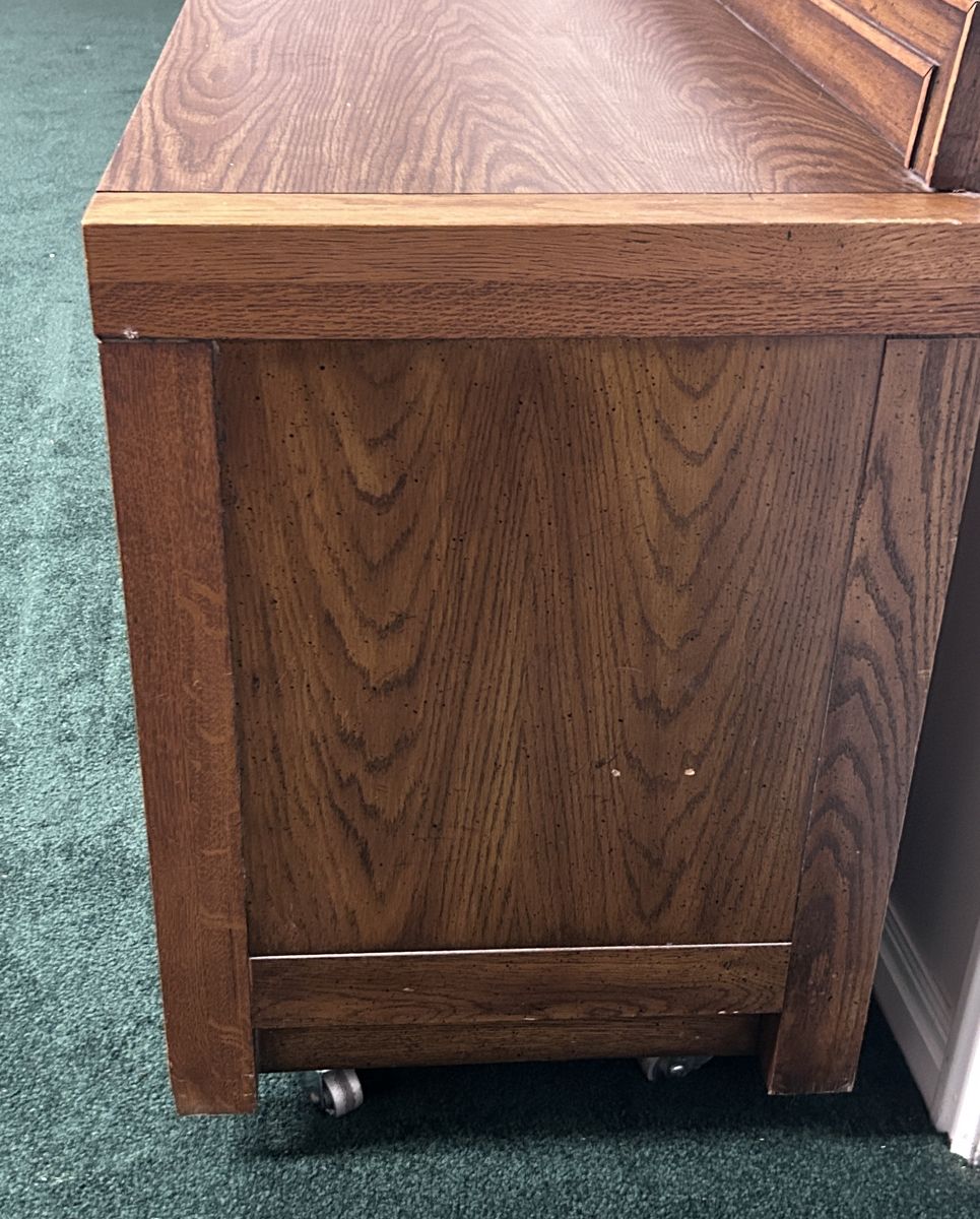 It is also the perfect height for a TV Stand with lots of excellent storage for all your DVDs and games. This versatile piece can also serve as a sideboard, buffet, credenza, or server. This particular dresser had Restoration Hardware-like wheels attached to the bottom so it can easily be moved from one place to another such as from the garage to the patio when you have a big back-yard party.