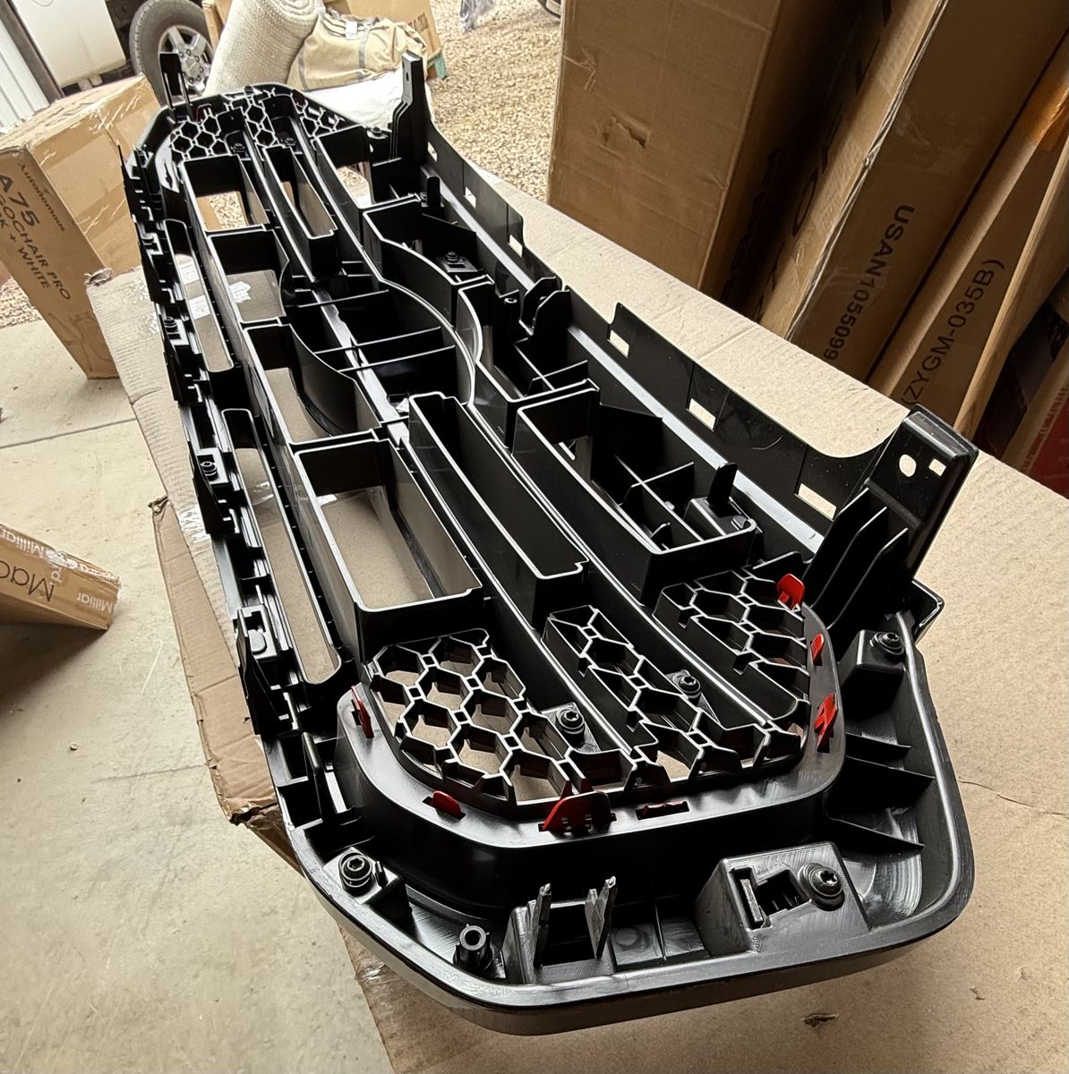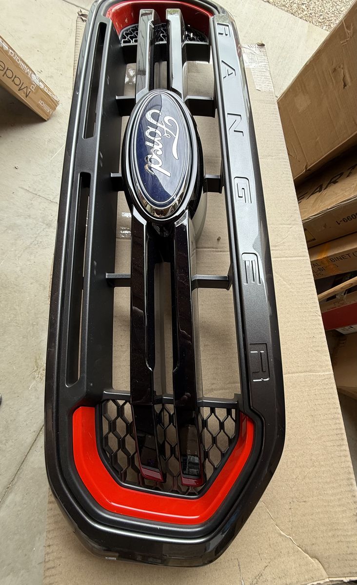 Brand New •Ford Performance part # KB3Z-8C324-FA •Fits ANY 2019-2023 Ford Ranger •Original equipment on the Ranger Tremor Package •Direct replacement for factory grille •Includes pre-installed "Ford" oval emblem •Magnetic gray trim w/ gloss black bars & red side accents