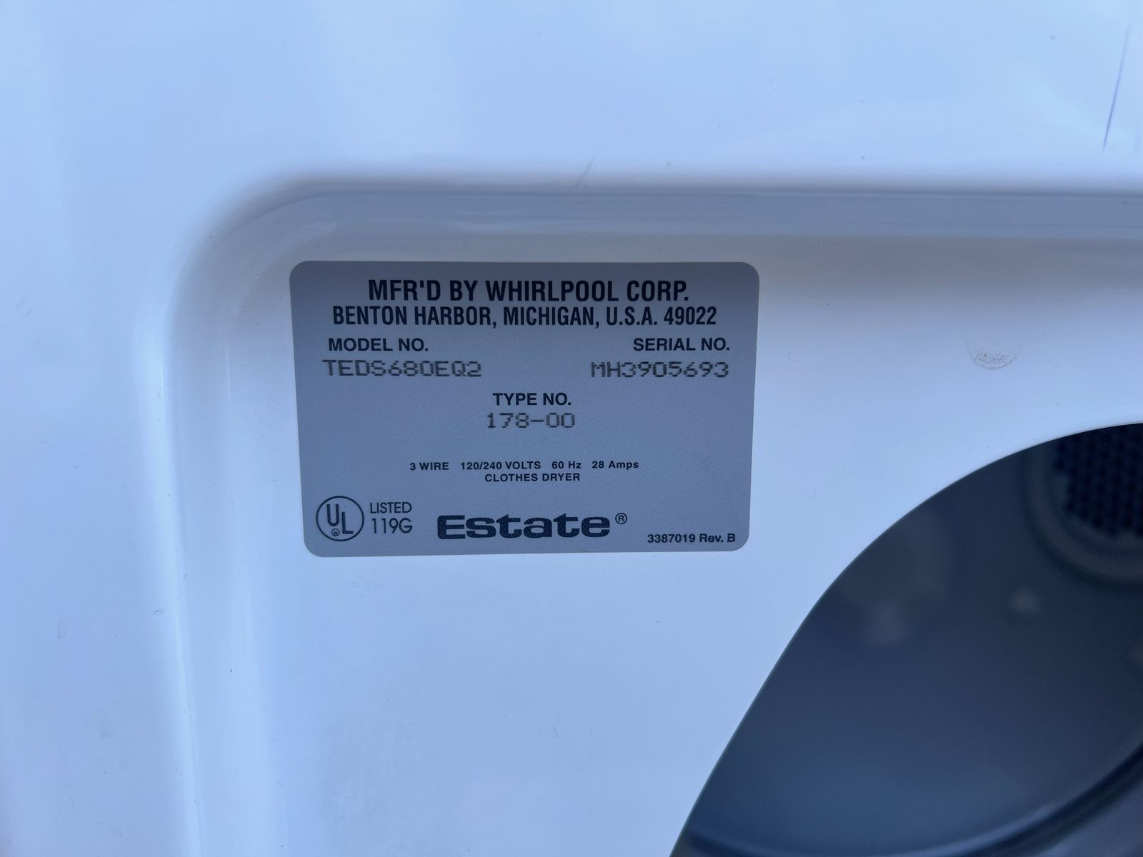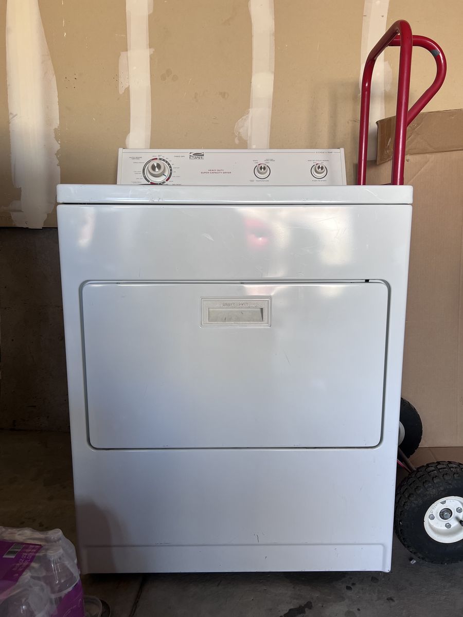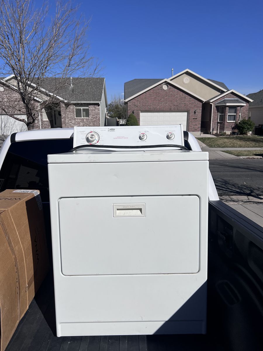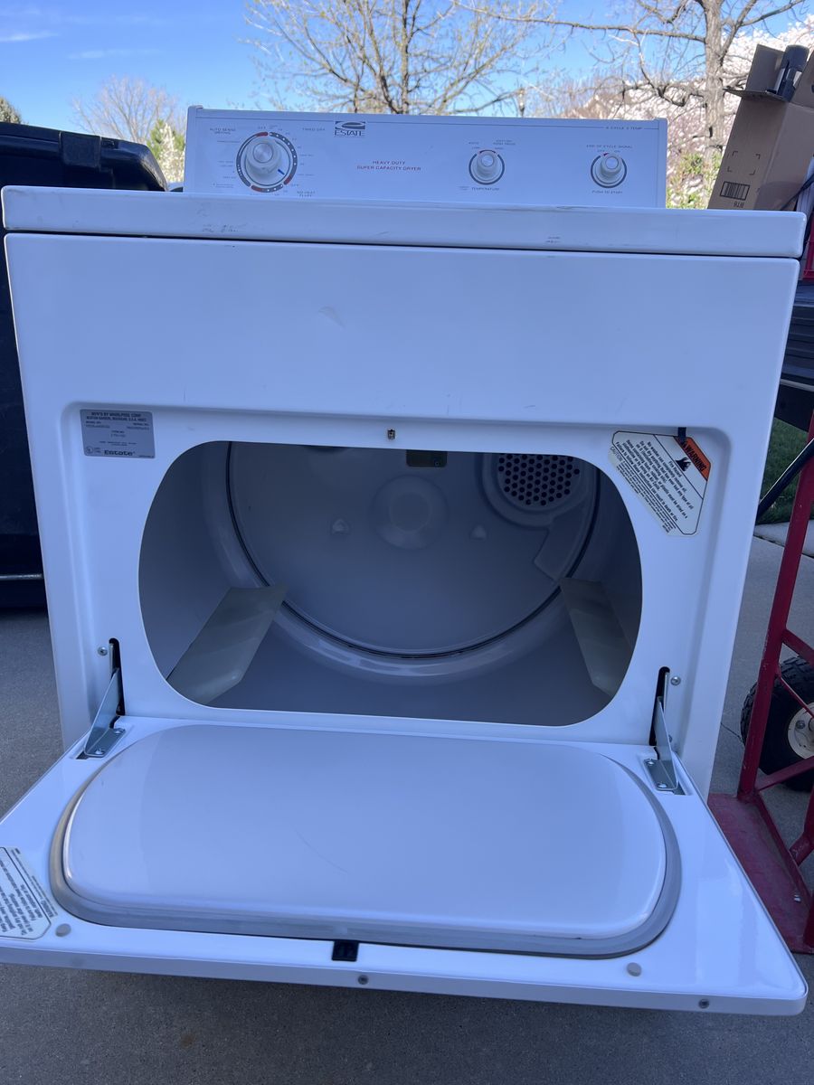 Whirlpool estate dryer. Works like a champ. Some wear and tear on the exterior, but functions just fine.