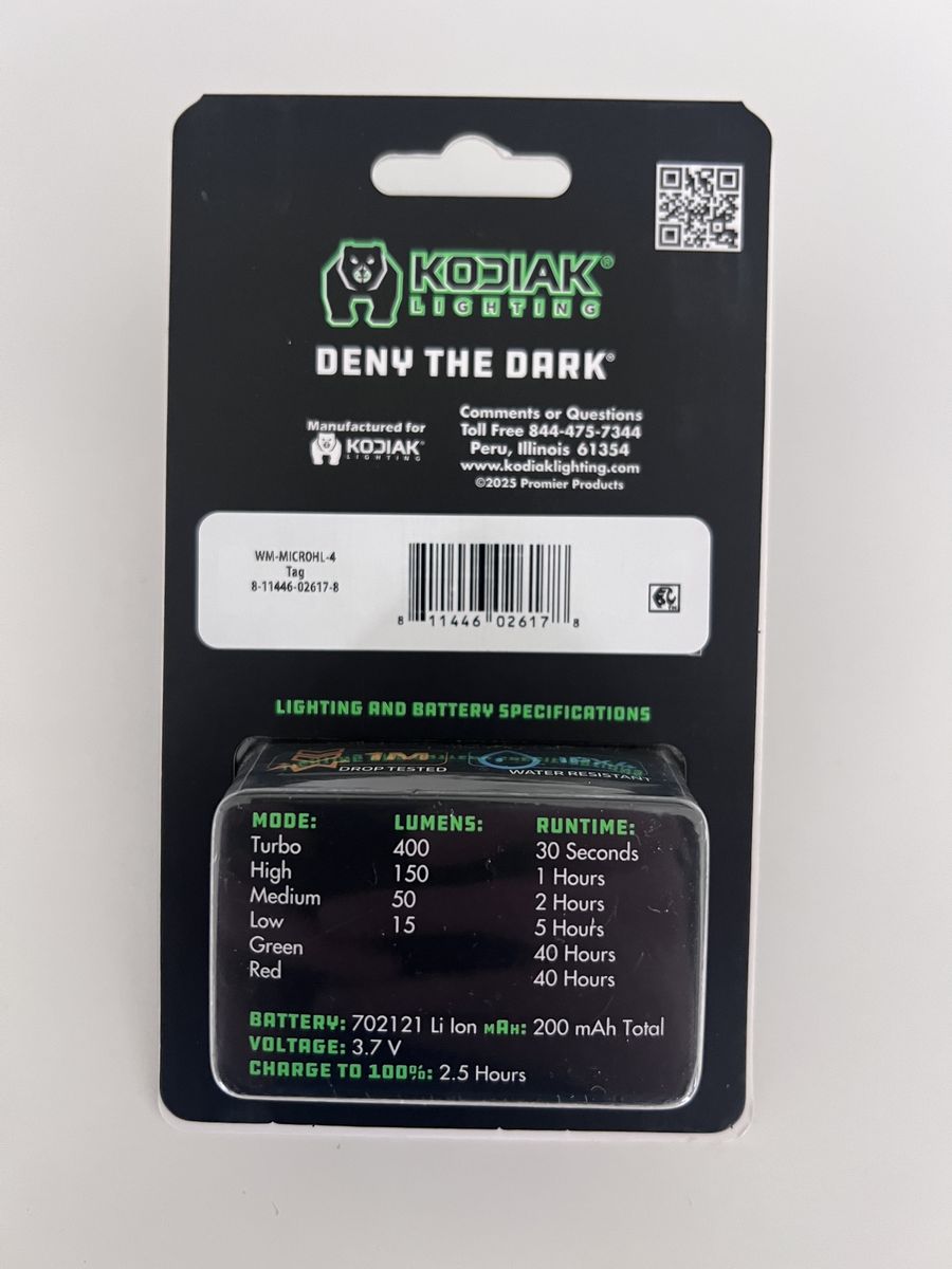 VenmoNew, Kodiak THE KIP rechargeable headlamp and cap light by Kodiak Lighting. Up to 400 lumens with 4 modes, and weighs less than 1oz.
