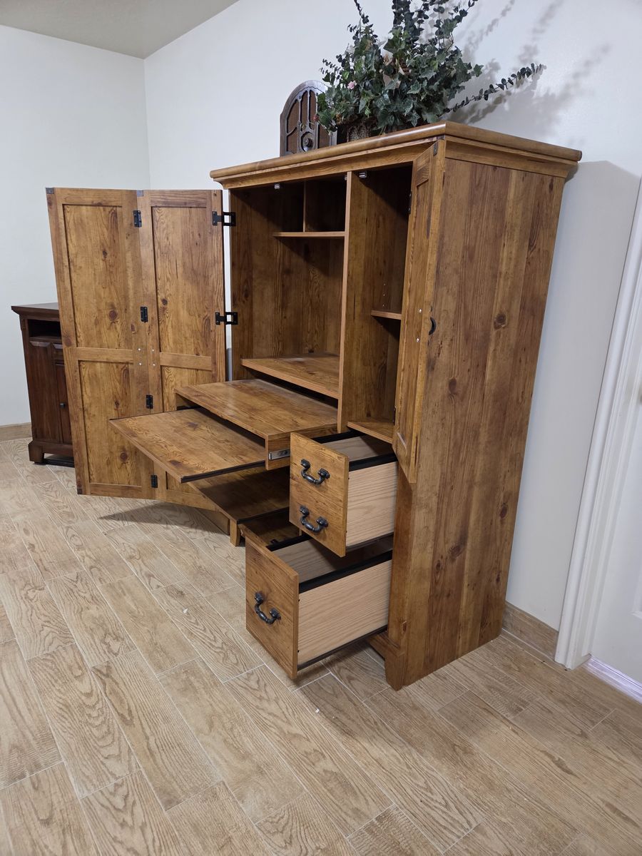 VenmoMaximize your workspace with this sleek and functional computer desk and cabinet. Crafted with durable materials, it offers a spacious desktop perfect for monitors, laptops, and accessories, while the integrated cabinet provides ample storage for documents, peripherals, and office essentials. Its clean design blends seamlessly with any home or office décor, making it ideal for both work and study. Thoughtful features like cable management, adjustable shelves, and smooth drawer glides enhance organization and efficiency, keeping your workspace tidy and productive.
