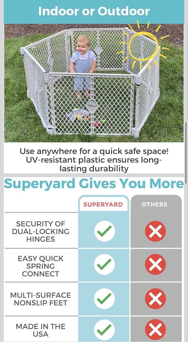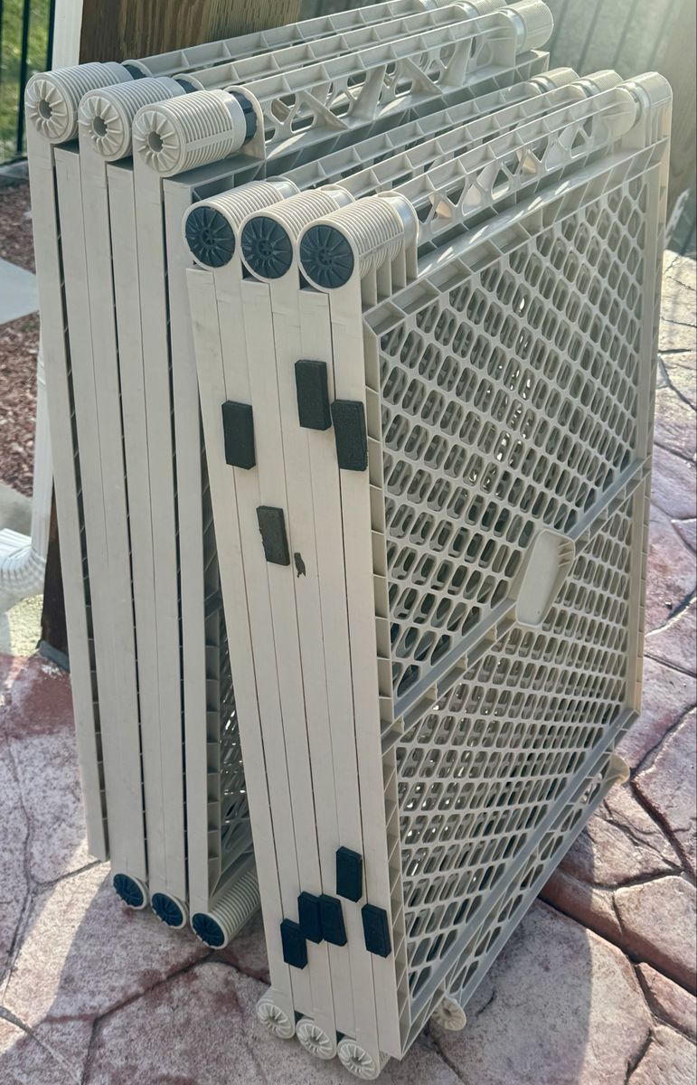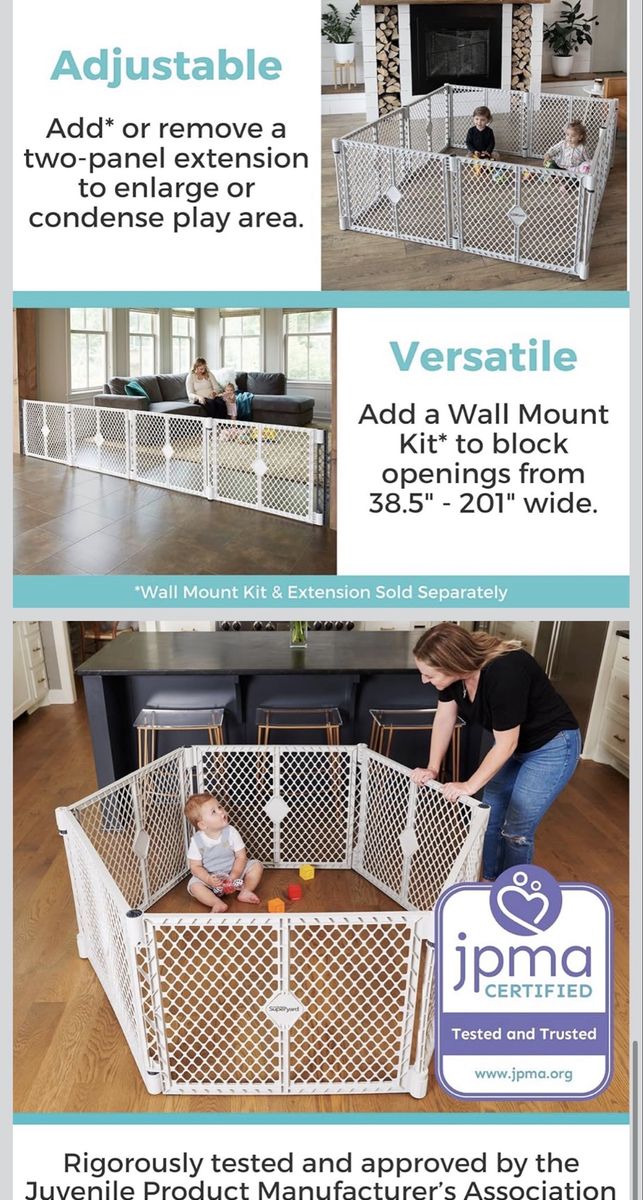ApplePayUsed Toddleroo by North Gates X-Lg 12 Panel Baby Playpen. Normally sold by 6 panels, so essentially it’s a double pack that can be used to create one giant superyard toddler/baby playpen. Each panel is 26” tall and can enclose up to 37 ft together. They’re a light grey/off-white color. Original cost together was $128 + tax, asking $85. They have been cleaned and ready to go! Message for questions. Pick-up preferred.
