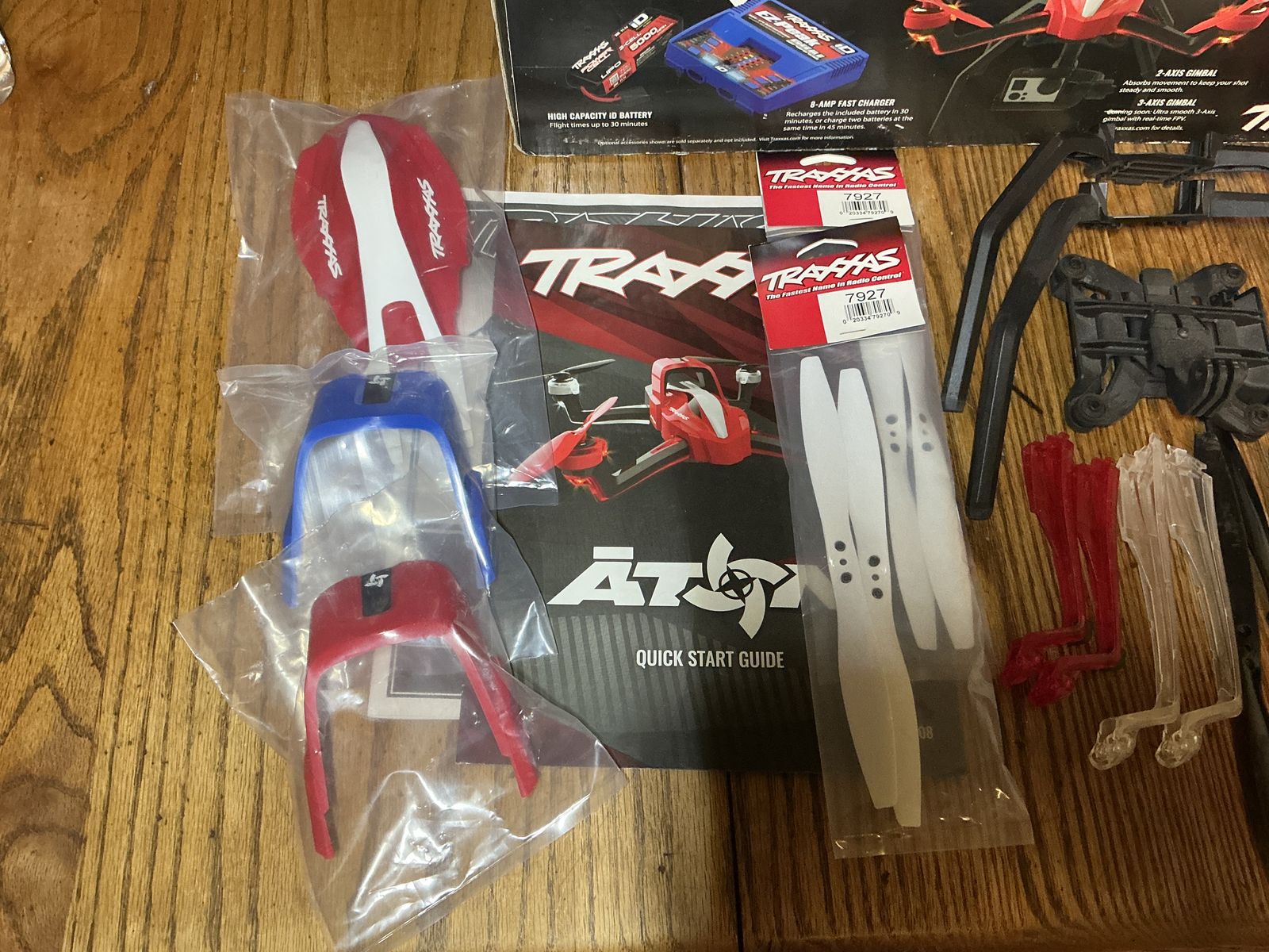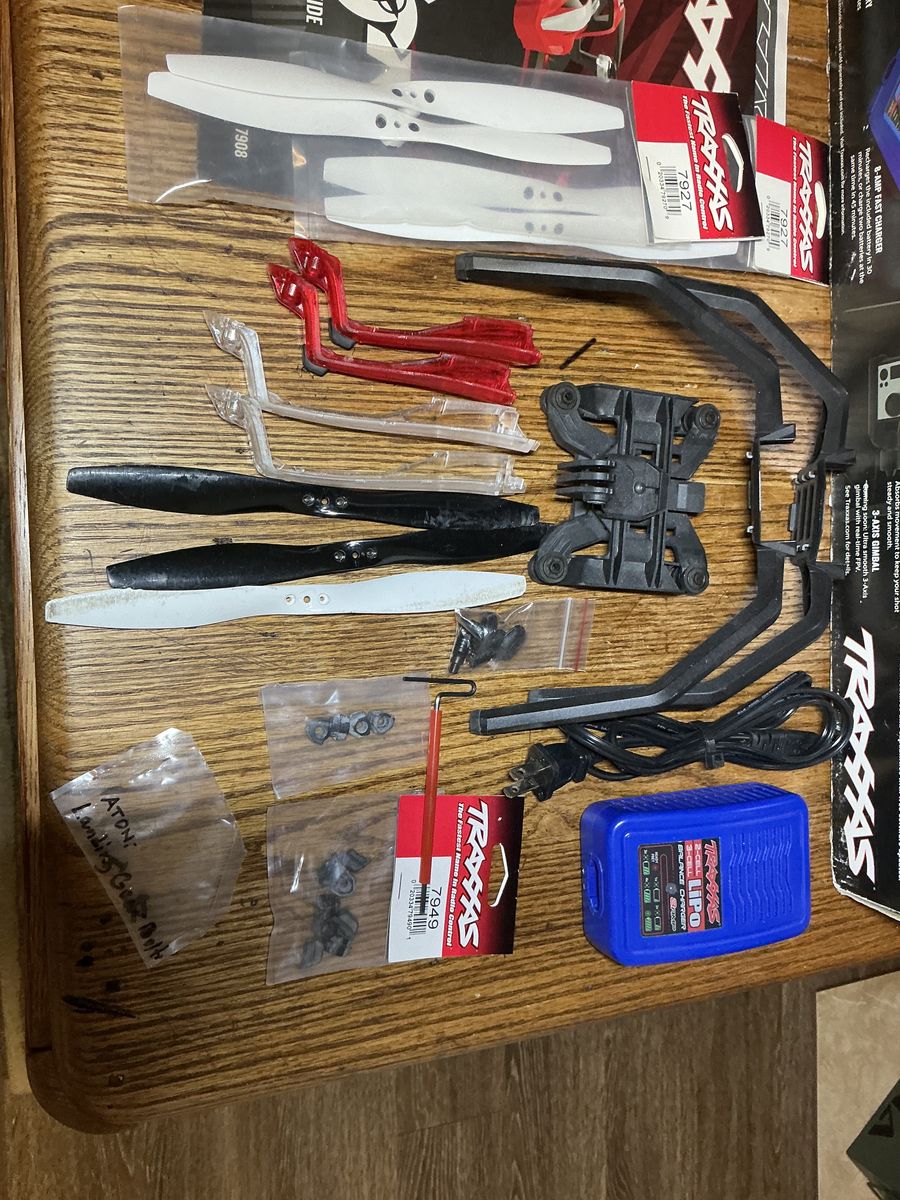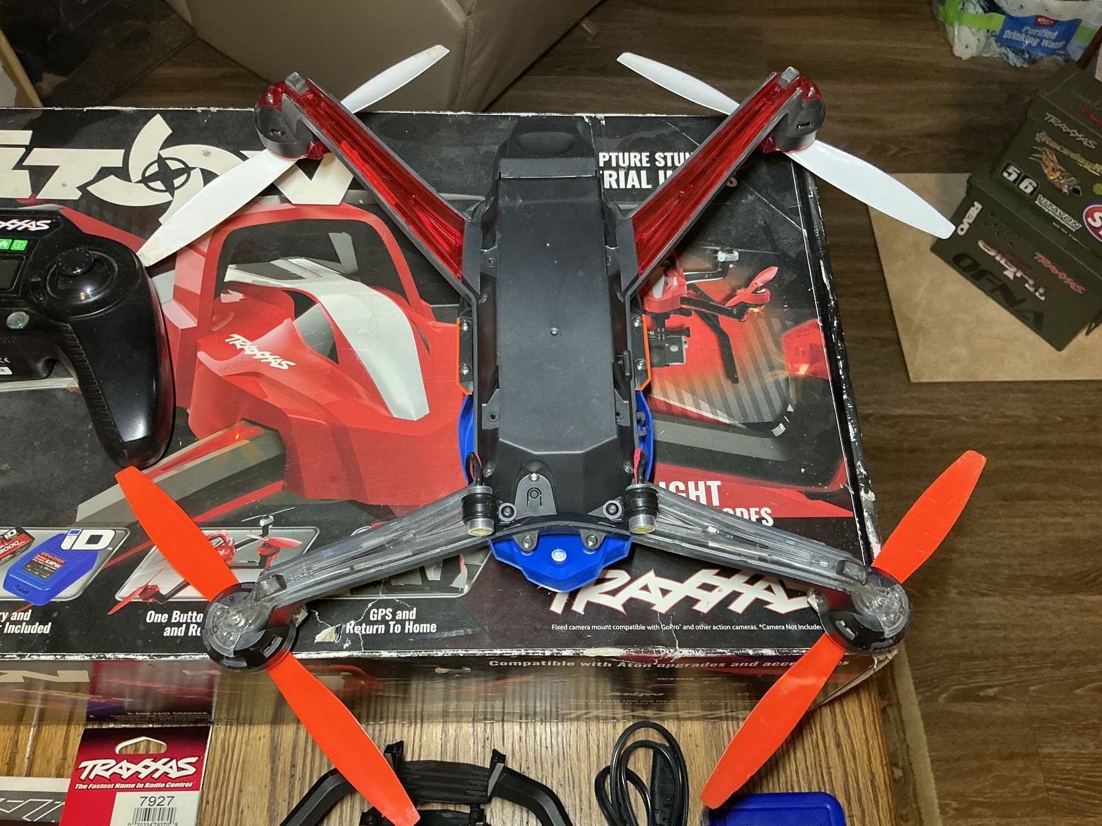 Traxxas Aton with GoPro landing gear and a few extras. I haven’t flown it in a couple years and not willing to buy batteries for it at this time. The last couple times I had flown the Aton it was going into low voltage cut off warning on the radio during hard full throttle blast then turn off when gently flying. I’m pretty sure it’s just the aging battery that triggers the low voltage alarm but just in case it isn’t that I’m selling it for only 50 bucks.
