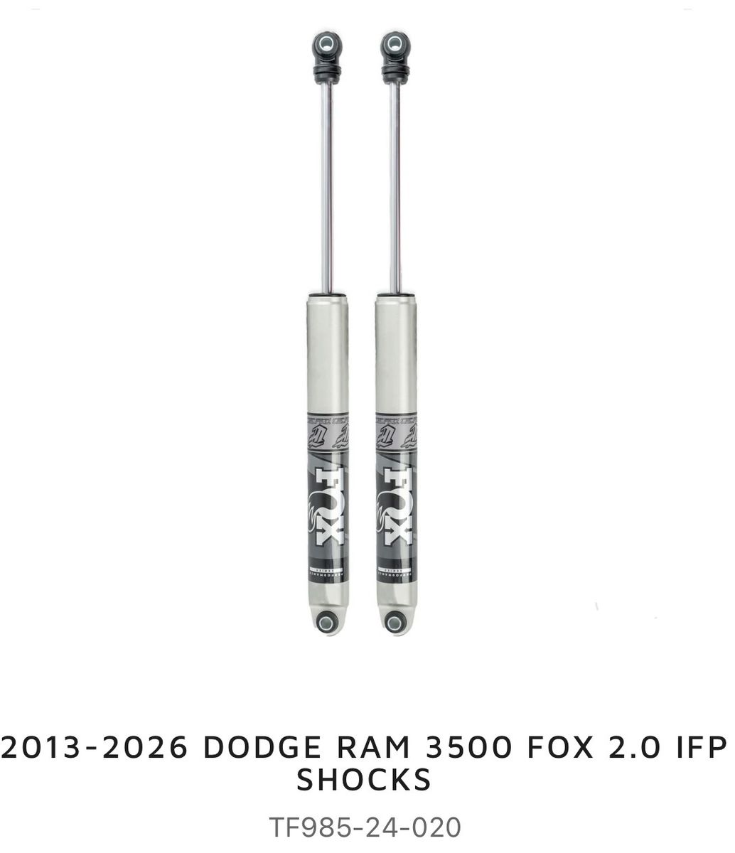 ZelleSelling a full set (front & rear)of Fox 2.0 Performance shocks that came off my Ram 2500/3500 after about a year of use. These were part of a Thuren 1.75” leveling kit.