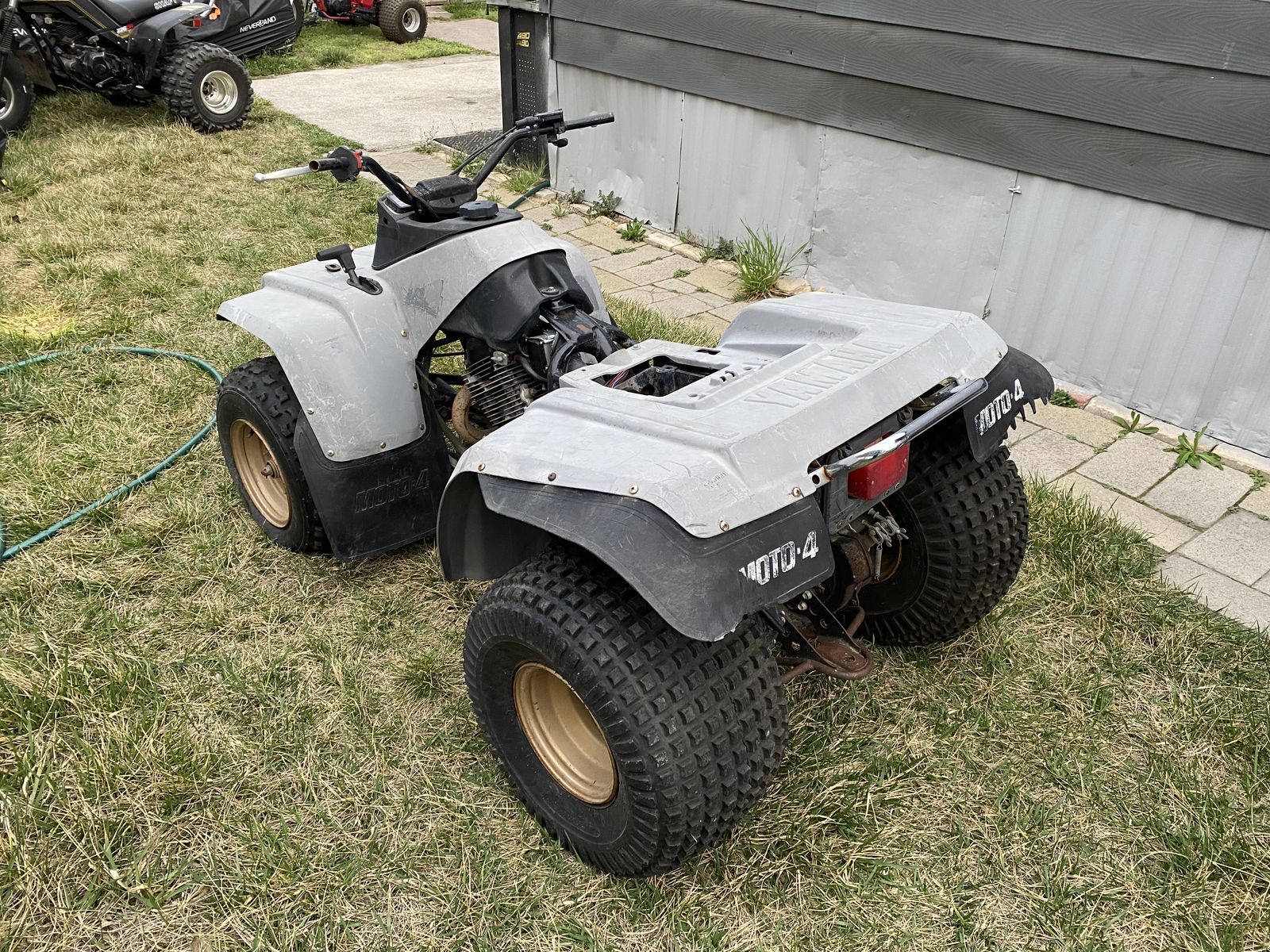 Yamaha moto 4 project, needs work, but was running when parked. I have a box of spare parts to go along with it. Probably just needs a carb clean, then will run again. Has flat tires, but I have 4 new tubes that just need installed. $200 cash