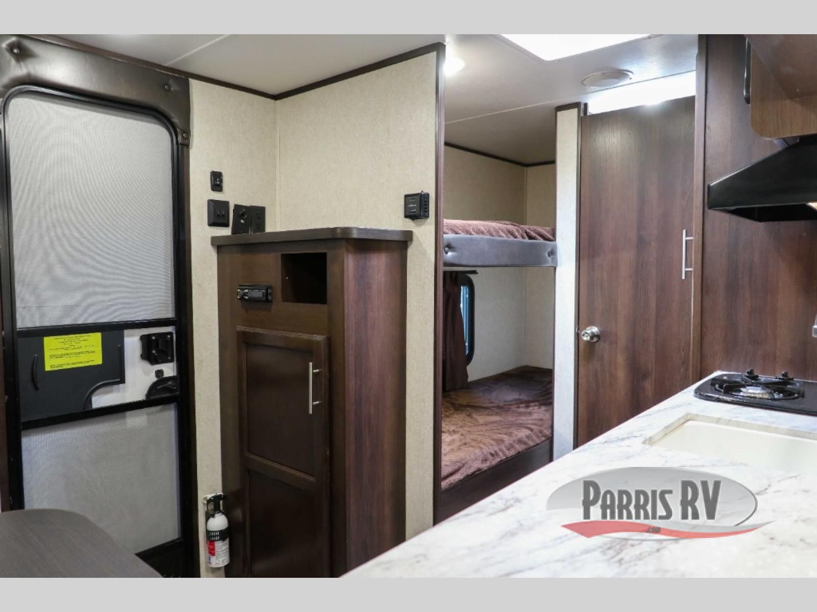 Your family will enjoy getting away for a weekend of outdoor fun in this Jay Flight SLX 7 travel trailer model 154BH. This unit provides all the comforts needed with sleeping for 3-4, kitchen amenities that allow you to cook inside, and the rear corner private tub/shower and toilet area provides a way for everyone to keep clean and refreshed. The kids will love the bunk beds which are rated for 300 lbs. each so even an adult can use them if they like. Enjoy your meals inside seated at the front dinette while enjoying the stunning view of your surroundings through the large picture window. Hang out outdoors with an adequate 10' shady spot out under the power awning, and at night the LED lights can be turned on to make entertaining after dark a nice treat too!