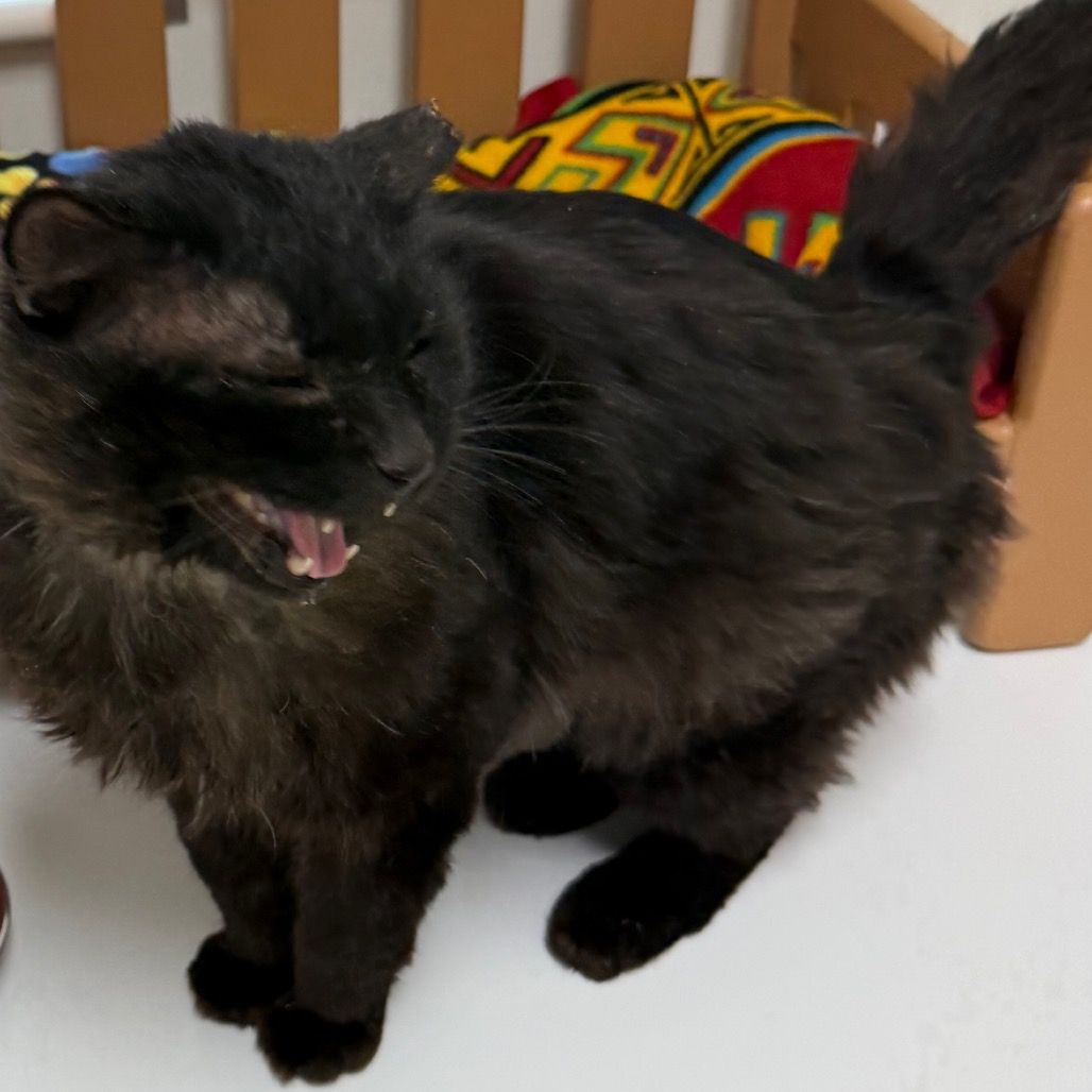 Prince Eric is a handsome black domestic medium hair with a regal name and a personality to match. He’s a chatty, attention-loving companion who isn’t shy about asking for affection. Well-socialized and incredibly friendly, Prince Eric thrives on human interaction and will happily lean in for pets whenever you’re nearby.