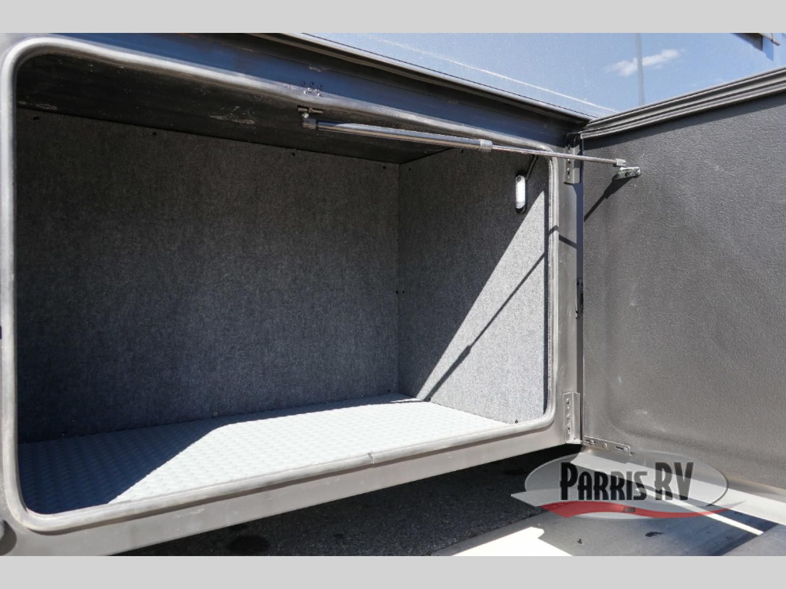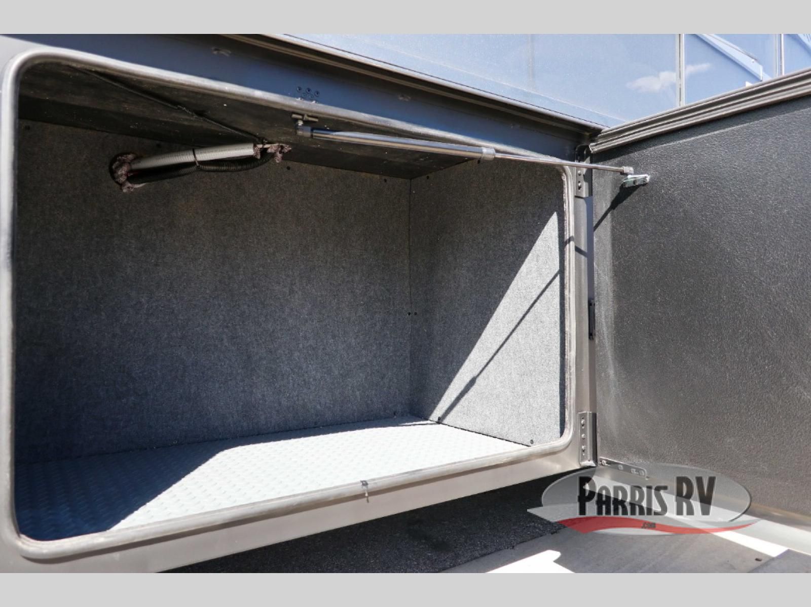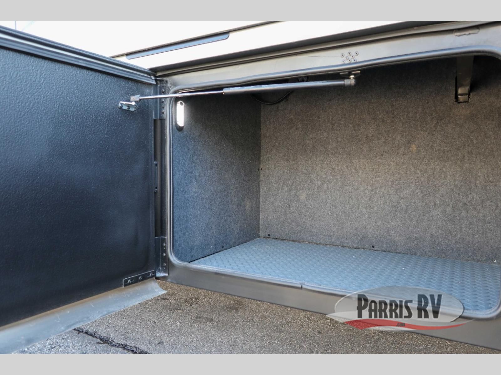 At the front, you're welcomed into the cockpit area with an overhead bunk that adds sleeping space without sacrificing comfort. The spacious living area features a large slide out that houses theater seating, giving you a comfy place to relax. Next to it, the Dream Dinette is perfect for enjoying meals, playing board games, or simply spending quality time together. The slide out also includes a pantry, offering storage for dry goods, while across from it the kitchen features a solid surface countertop, a gunmetal steel sink, a sealed glass range with a glass cover, and a 15-cu. ft. refrigerator to easily handle all your grocery needs. A convenient half bath is located mid-coach, while the rear of the motorhome is dedicated to a private bedroom featuring a Tilt-A-View king bed slide out, nightstands on both sides, dual wardrobes, a dresser, and a centrally located 32" TV. At the very back, the full bathroom completes the layout with a medicine cabinet and an additional wardrobe, delivering comfort, functionality, and abundant storage throughout the coach.