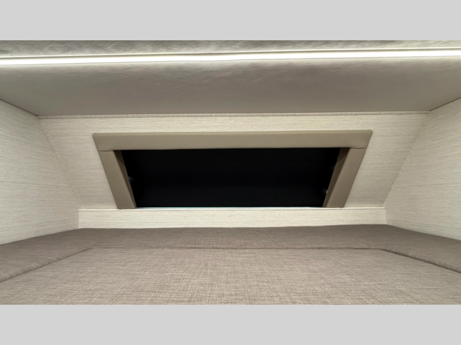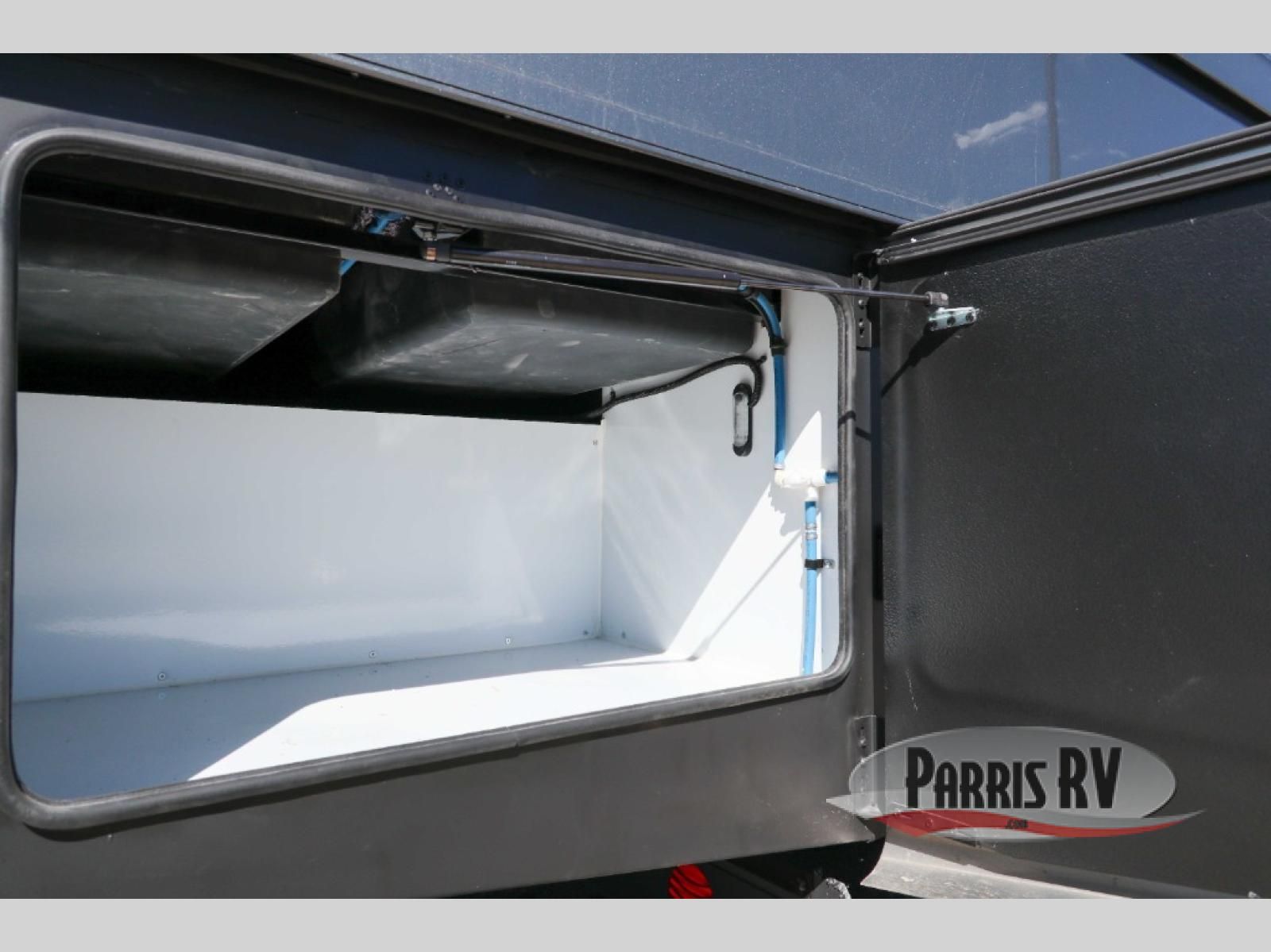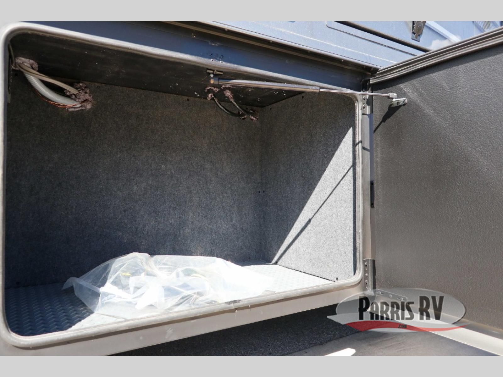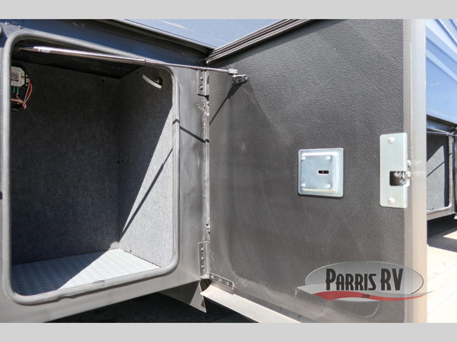 At the front, you're welcomed into the cockpit area with an overhead bunk that adds sleeping space without sacrificing comfort. The spacious living area features a large slide out that houses theater seating, giving you a comfy place to relax. Next to it, the Dream Dinette is perfect for enjoying meals, playing board games, or simply spending quality time together. The slide out also includes a pantry, offering storage for dry goods, while across from it the kitchen features a solid surface countertop, a gunmetal steel sink, a sealed glass range with a glass cover, and a 15-cu. ft. refrigerator to easily handle all your grocery needs. A convenient half bath is located mid-coach, while the rear of the motorhome is dedicated to a private bedroom featuring a Tilt-A-View king bed slide out, nightstands on both sides, dual wardrobes, a dresser, and a centrally located 32" TV. At the very back, the full bathroom completes the layout with a medicine cabinet and an additional wardrobe, delivering comfort, functionality, and abundant storage throughout the coach.