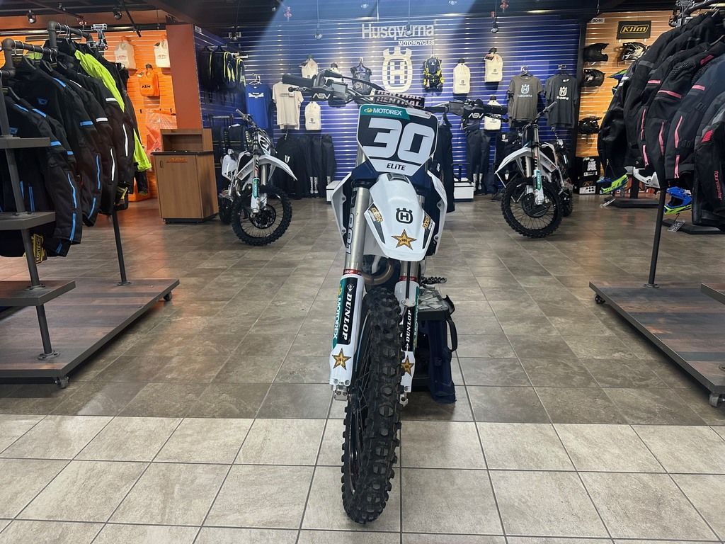 Widely praised as the best performing 250 cc 4-stroke on the market, the FC 250 retains its position at the head of the field. A compact and powerful engine is housed inside in an updated chromium molybdenum frame that is lower in weight and offers improved chassis flex. Updates to the WP suspension and rear shock linkage ensures the outstanding agility of the FC 250 is enhanced further for 2025. Its new bodywork offers refined ergonomics for effortless movement and control, with striking white and blue graphics applied using in-mold technology for an outstanding and long-lasting finish.