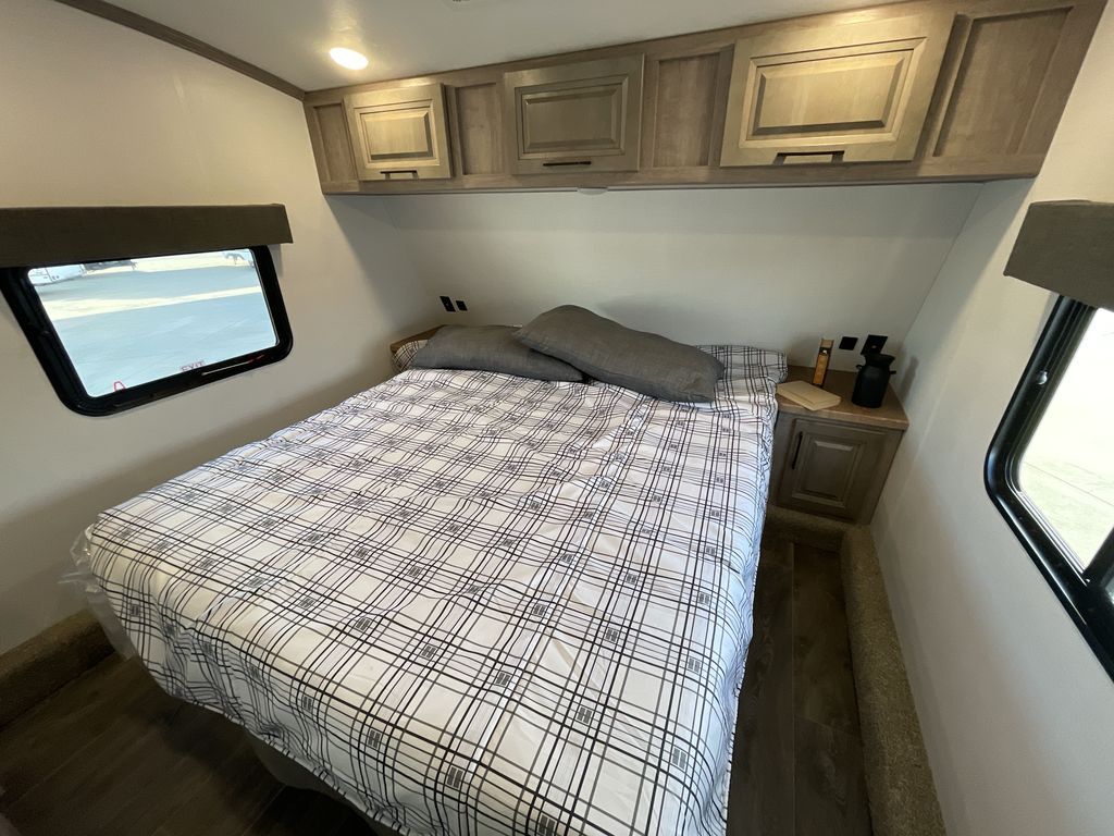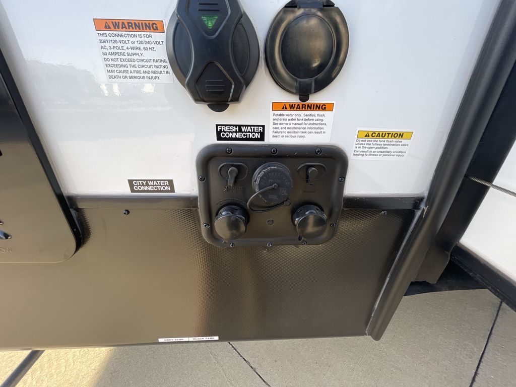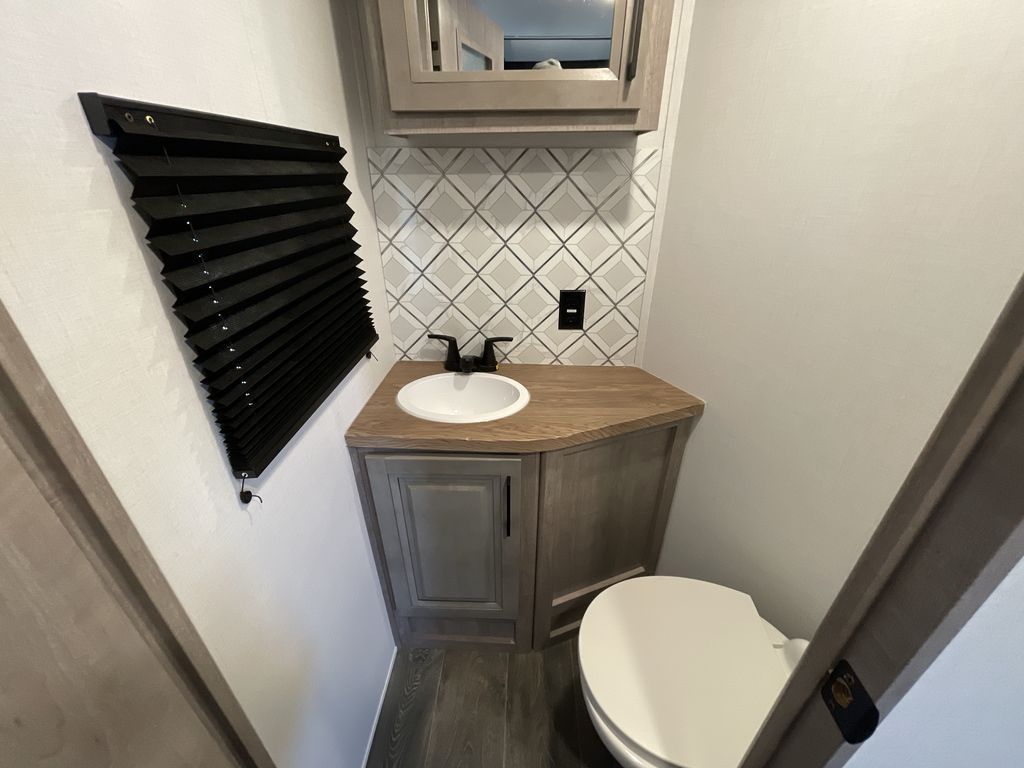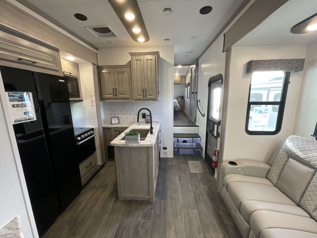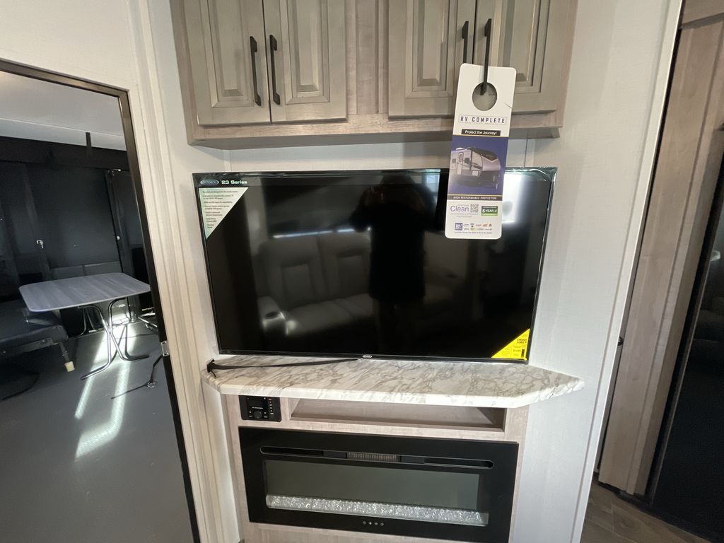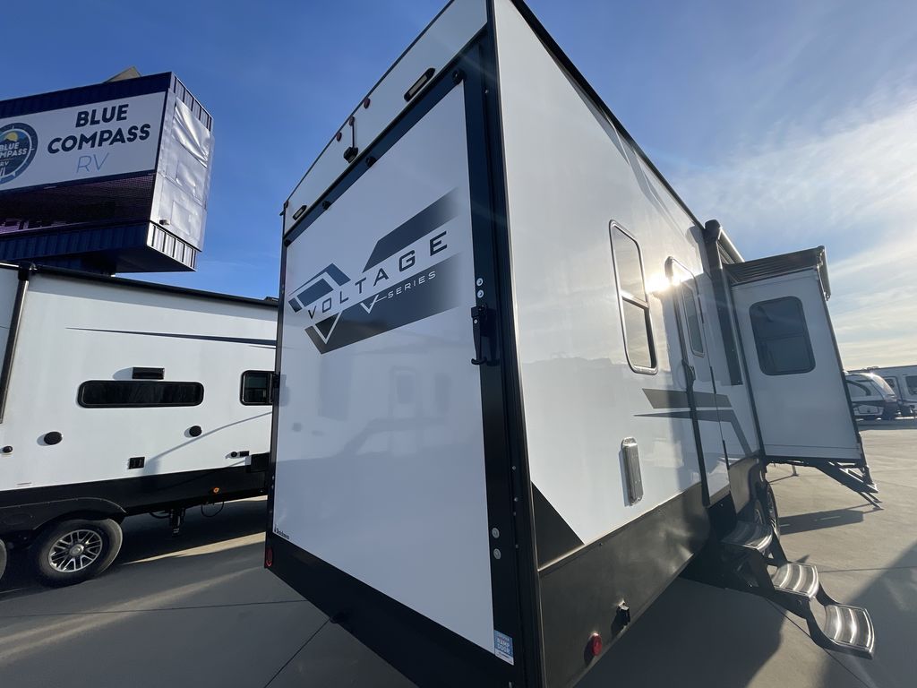 The Voltage V-Series by Dutchmen RV is a smaller and lighter weight choice when it comes to a toy hauler. These were designed with the same comforts that you would find in the standard Voltage models with the Signature Series collection including glazed cabinets with raised panel cabinet doors, modern hardware throughout, upgraded finishes and custom paint and stain. You will also enjoy the tankless water heater, garage Bed Lift System, Tuff Ply garage floor, and weight assisted ramp door for ease in loading and unloading your toys. A few bonus features like a 50" walk-in shower, 40" fireplace, and 30 gallon fuel station just makes your adventures that much more enjoyable! Come choose the Voltage V-Series as your new lightweight companion toy hauler today!