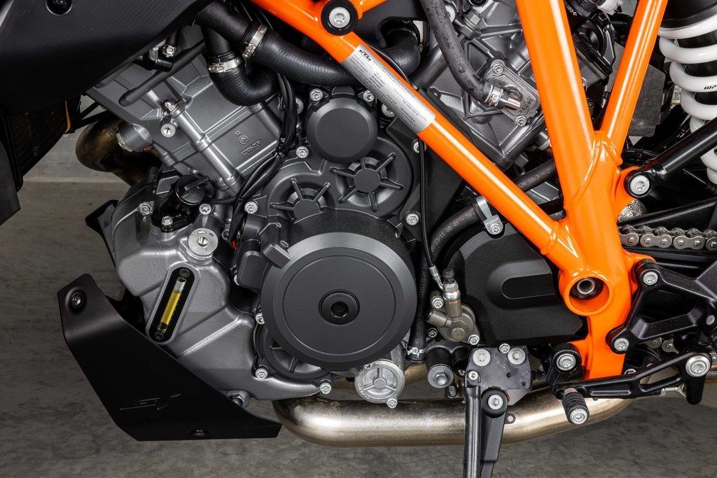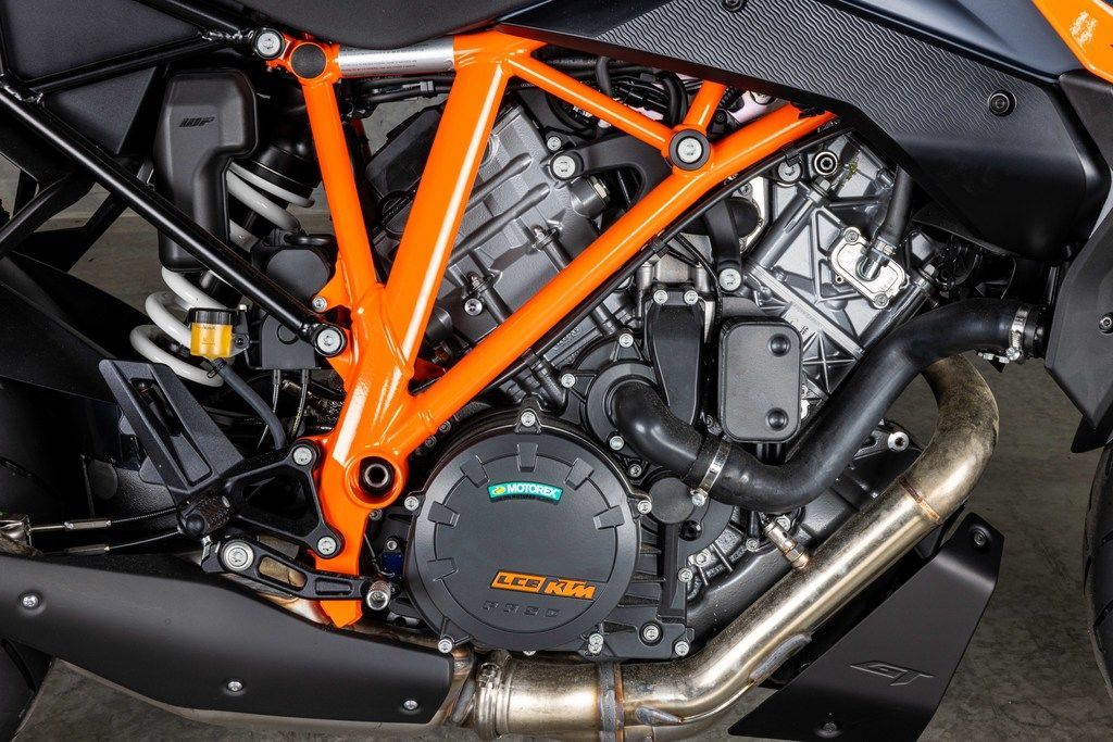 The KTM 1290 SUPER DUKE GT's BEAST-derived LC8 V-Twin powerplant perfectly fits its sovereign appearance. Reworked for reduced emissions without sacrificing power, it is as much a superbike slayer as it is a coastal road cruiser. A unique mix of the highest quality components, such as titanium inlet valves, have also combined to create overall reliability and allow for service intervals of 15,000 km. That's a lot of touring!