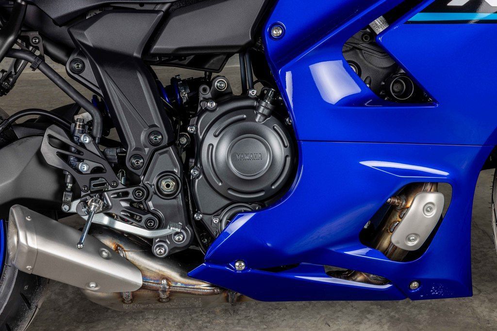 Contributing to the visceral connection between rider and machine, the new YZF-R7 adopts the same intake duct shape and asymmetrical funnel lengths as the current MT-07, harnessing the bike's induction roar for an enhanced feeling of acceleration from its renowned crossplane CP2 engine.