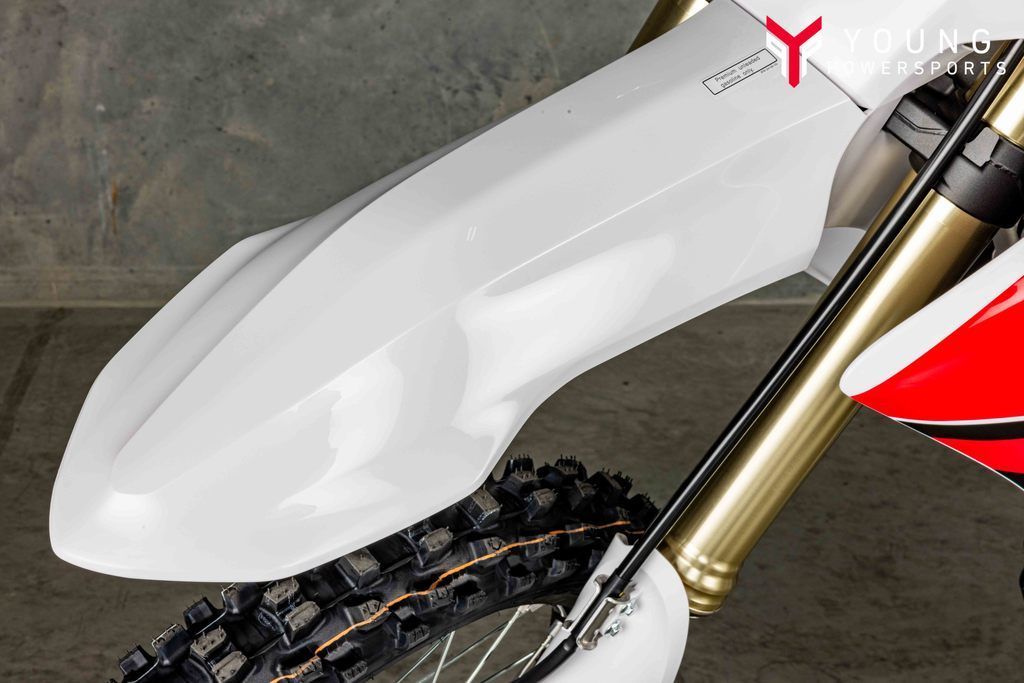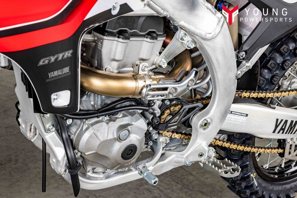 Additional top-spec details include wide foot pegs, quick-adjust clutch perch and gold drive chain with YZ450F-specific chain guide.