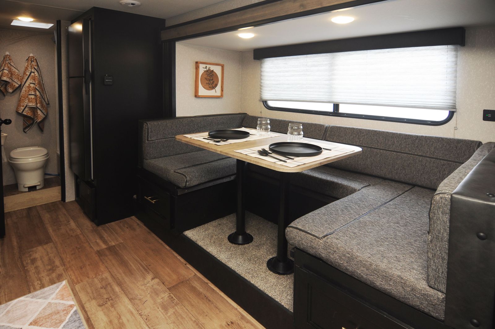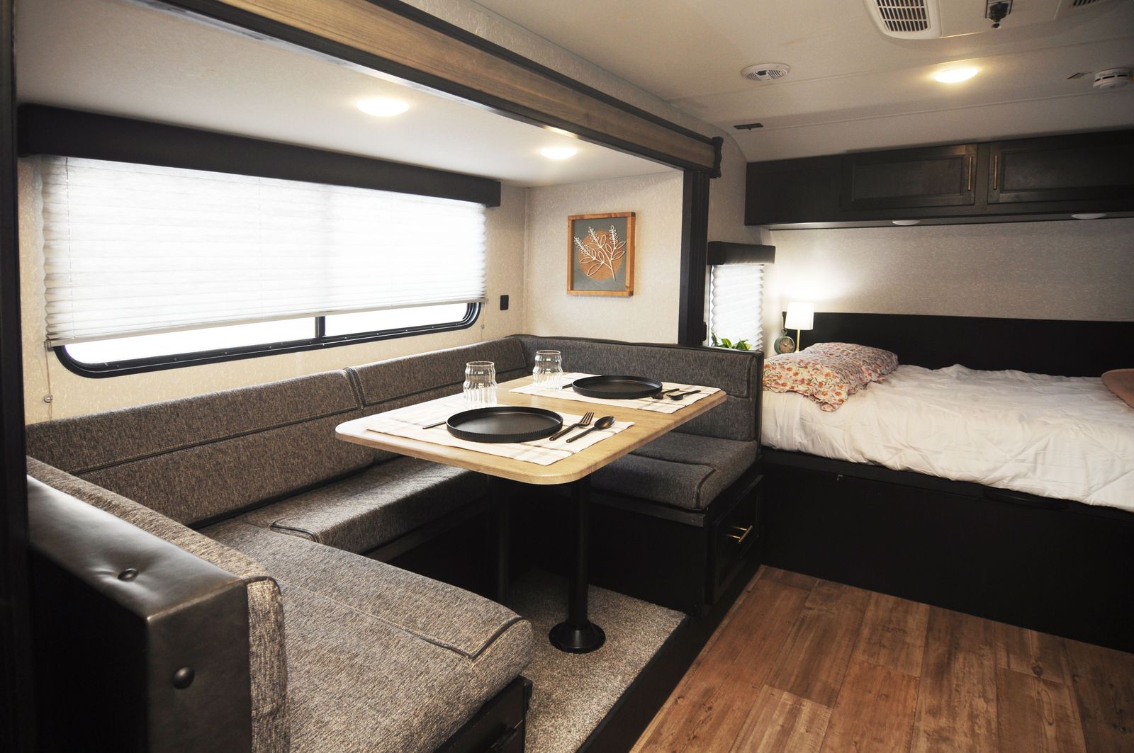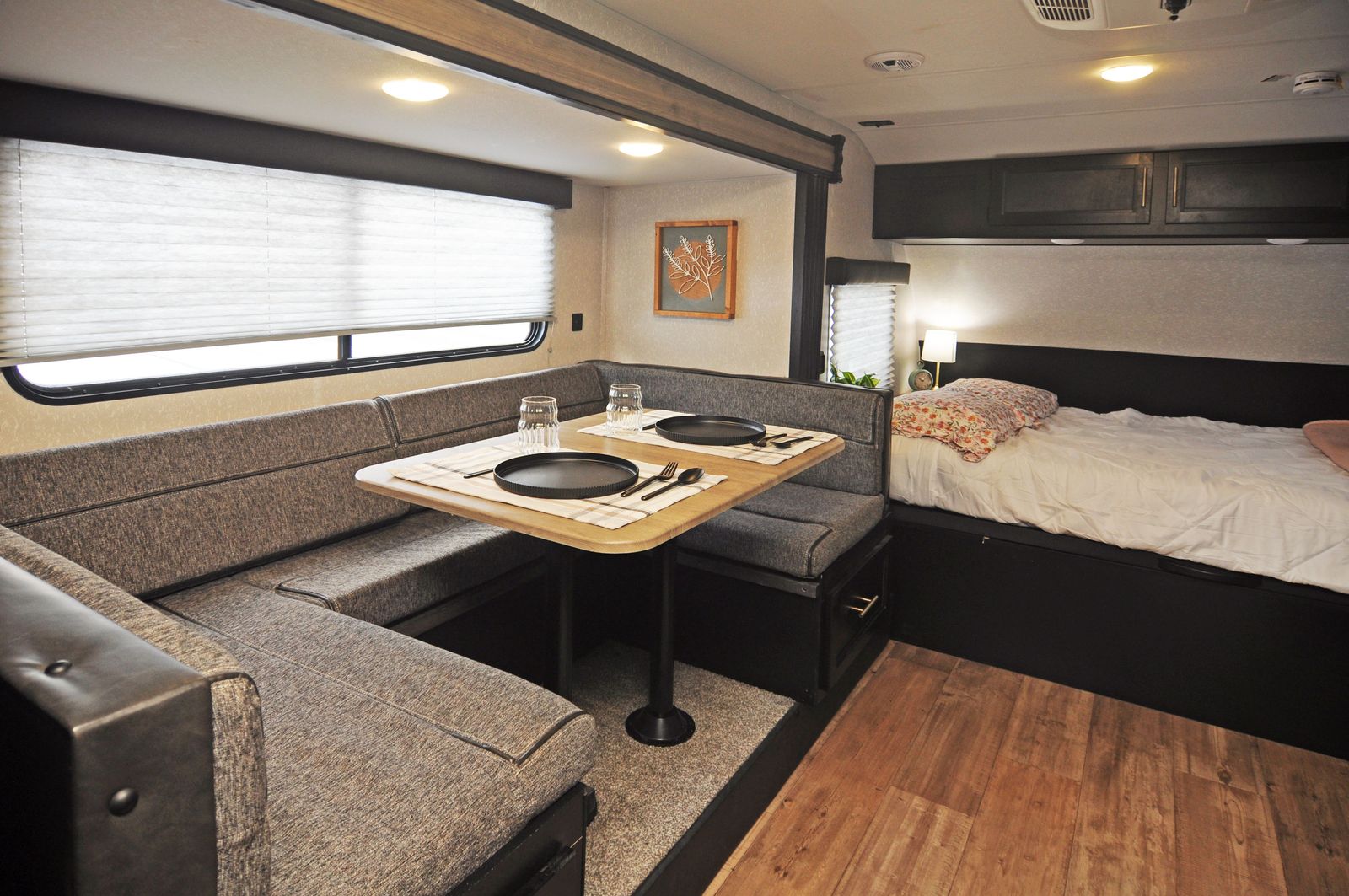 A convertible dinette for meals, games, and extra sleeping space