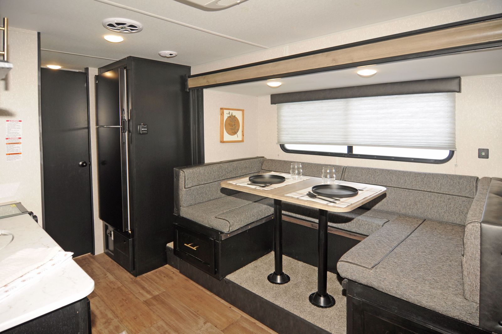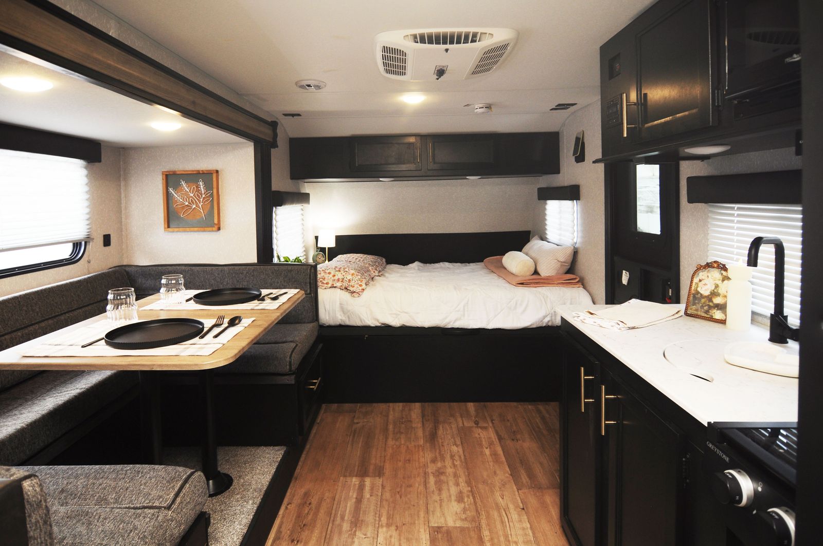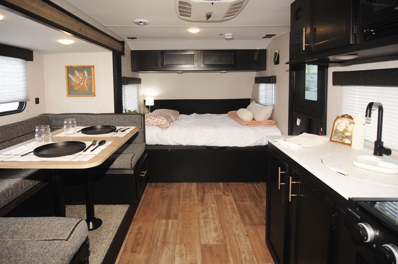 A convertible dinette for meals, games, and extra sleeping space