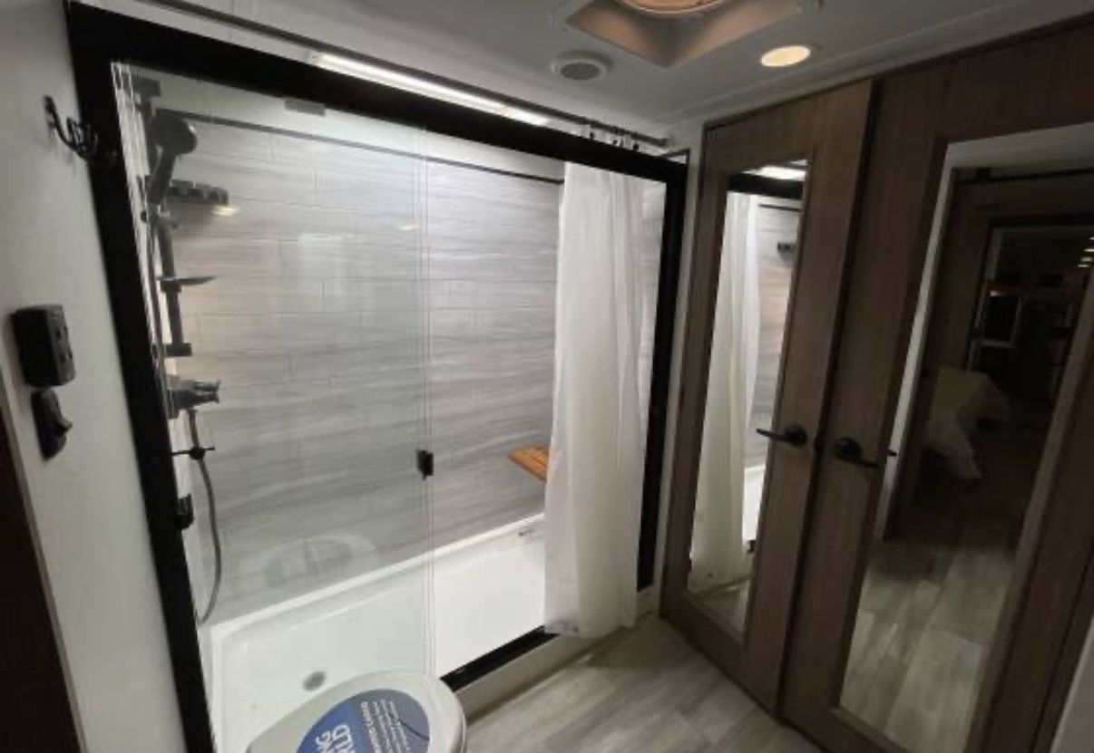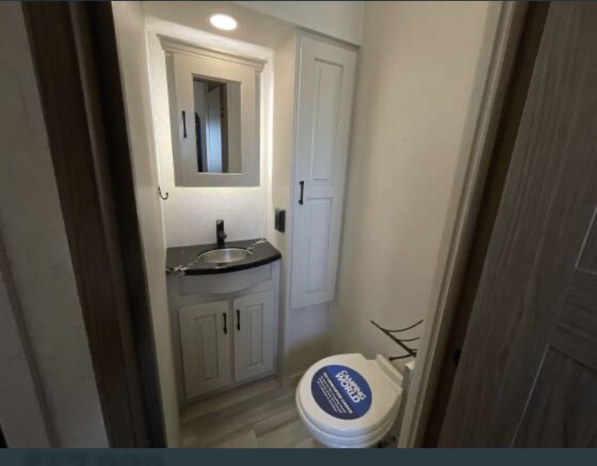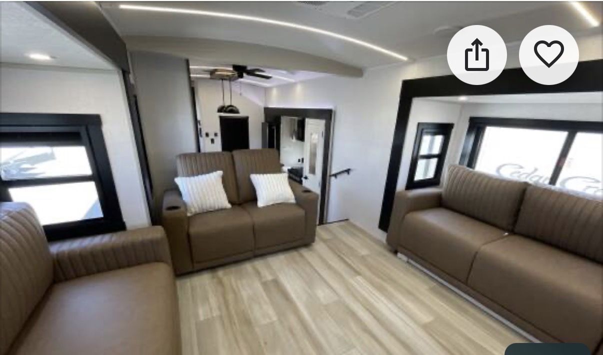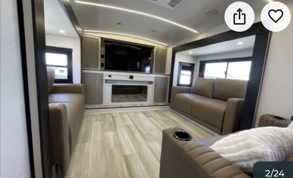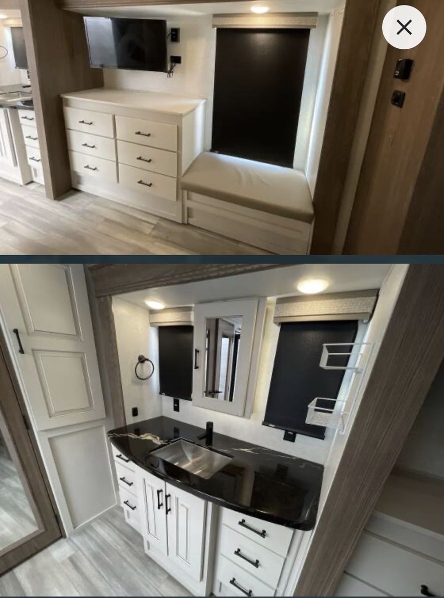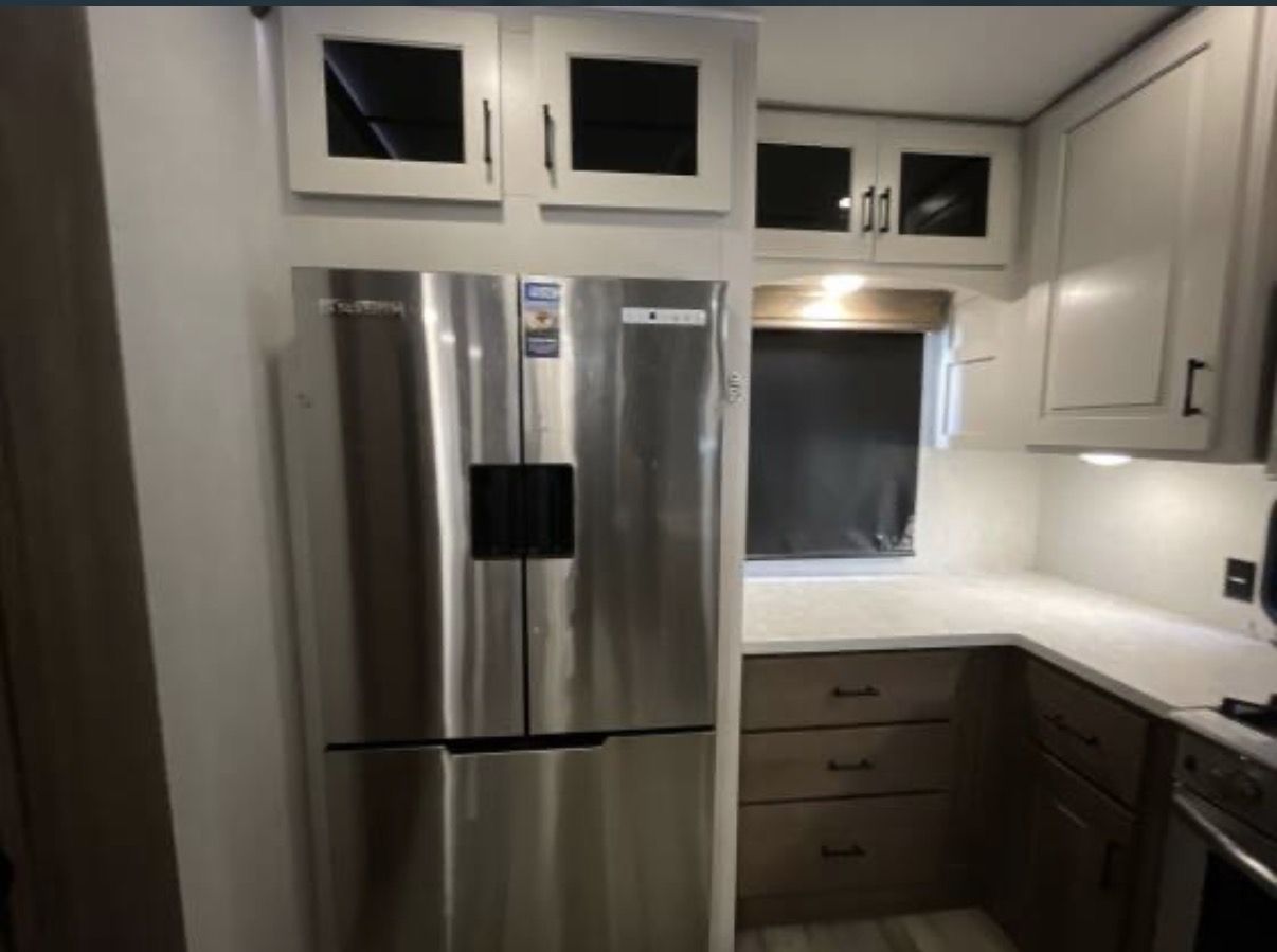 This is an Alliance, rarely can you find used and in the great condition it is in. Well made, owners love the Quailty and keep for along time. This RV and tires have traveled less than 400 miles. It has large kitchen area, residental fridge and large enough oven to cook a turkey in. It also has a dishwasher in it. A table for 4 with panoramic view. It has lots of kitchen cabinets plus a large pantry. Also, a second 1/2 bathroom, so nice. In the living room area it has a fireplace with TV above it and 2 recliner love seat, 2 other couch that make into beds for your guest. With the slides outs it is very spacious. To the front of the RV is the bedroom with a king bed, large oversized shower and bathroom. In the super large closet is prep for washer and dryer. This has space for everything. Outside has skirting for around the whole thing. It has solar in it, it is 4 season for the extra insulation and heated belly. It self levels, prep for generator. A lot of storage space underneath, too!! This has only been lived in for 1 year by an elderly couple, so hardly used at all. With the extras it is worth well over $90,000. Come see, you will fall in love with the comfort, Quailty you desire.