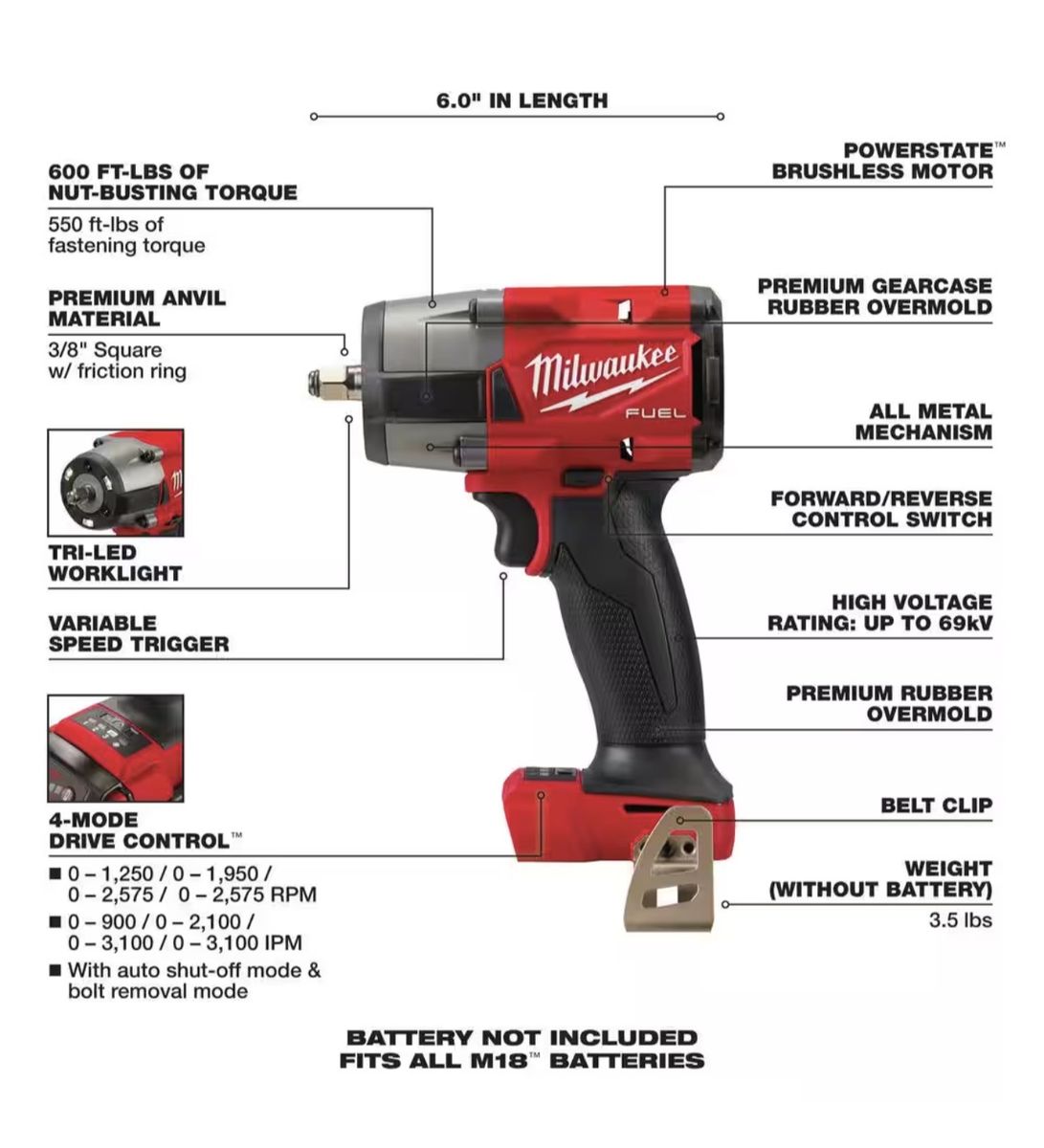 ZelleMilwaukee Mid Torque 3/8 W/Battery 8.0 Forge