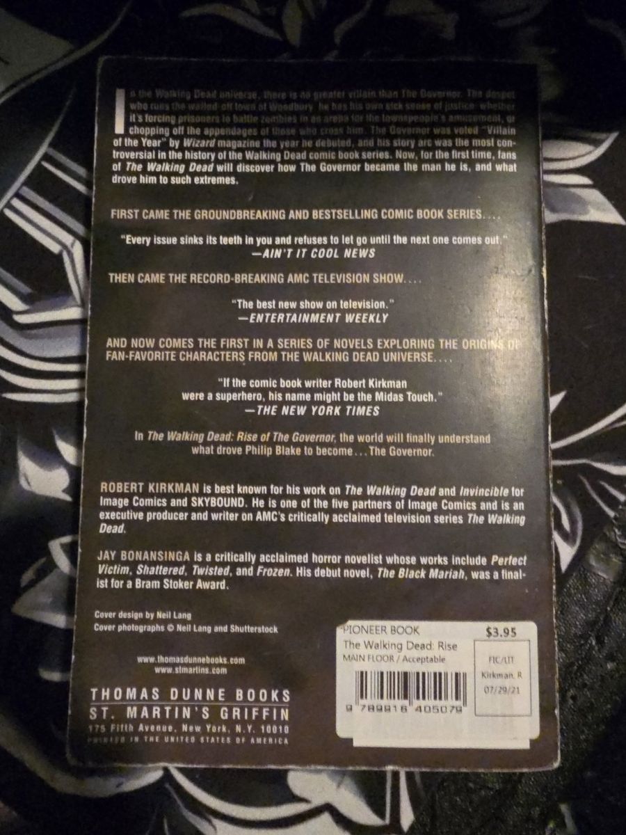 Venmo24 Hours by James Paterson- 20 A Goog Girl Guid to Murder by Holly Jackson- 20 The Walking Dead Rise of the Governer by Robert Kirkman and Jay Bonansinga- 20 Beauty and the Beast- 5 Or obo