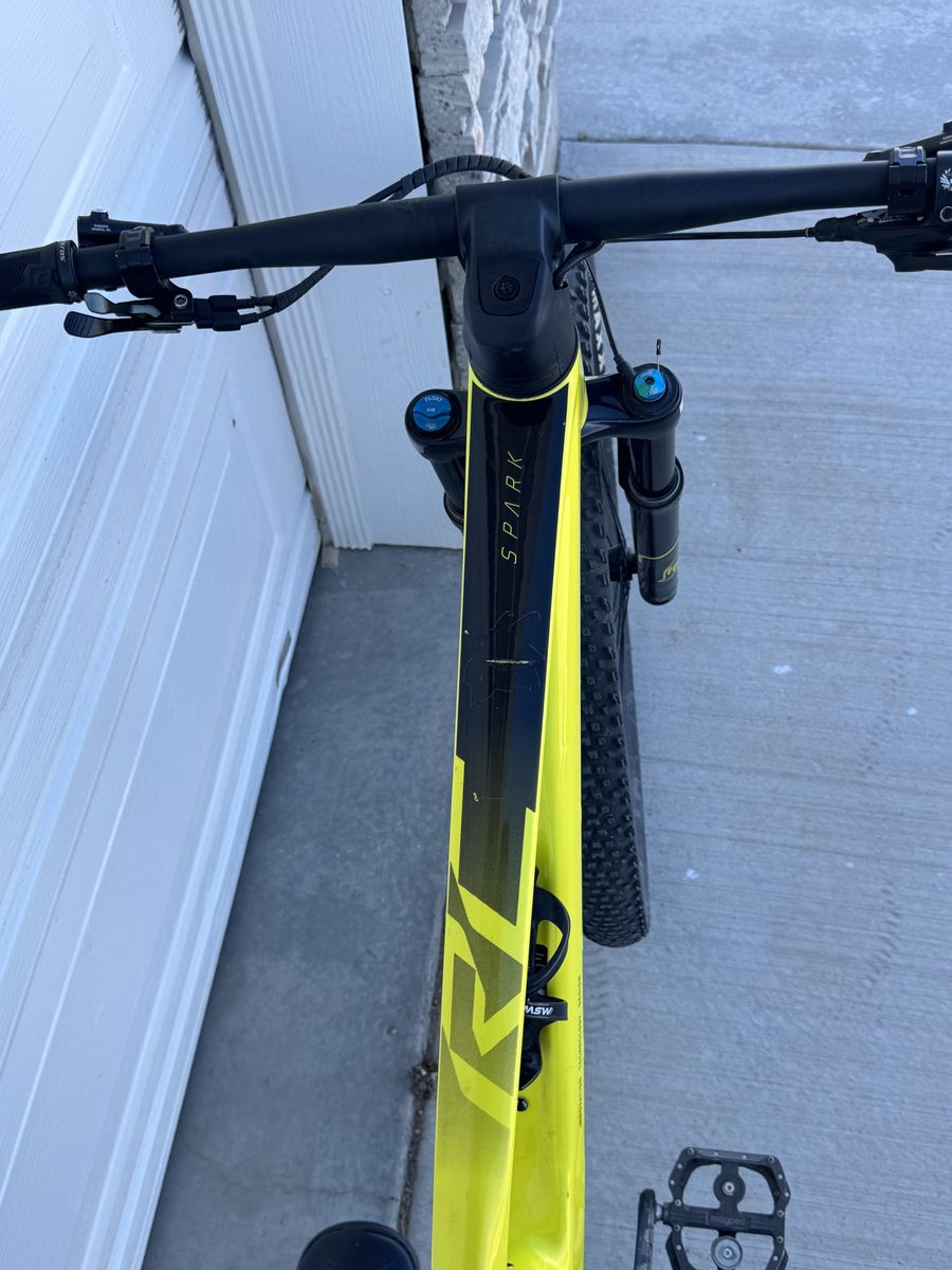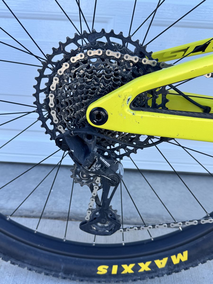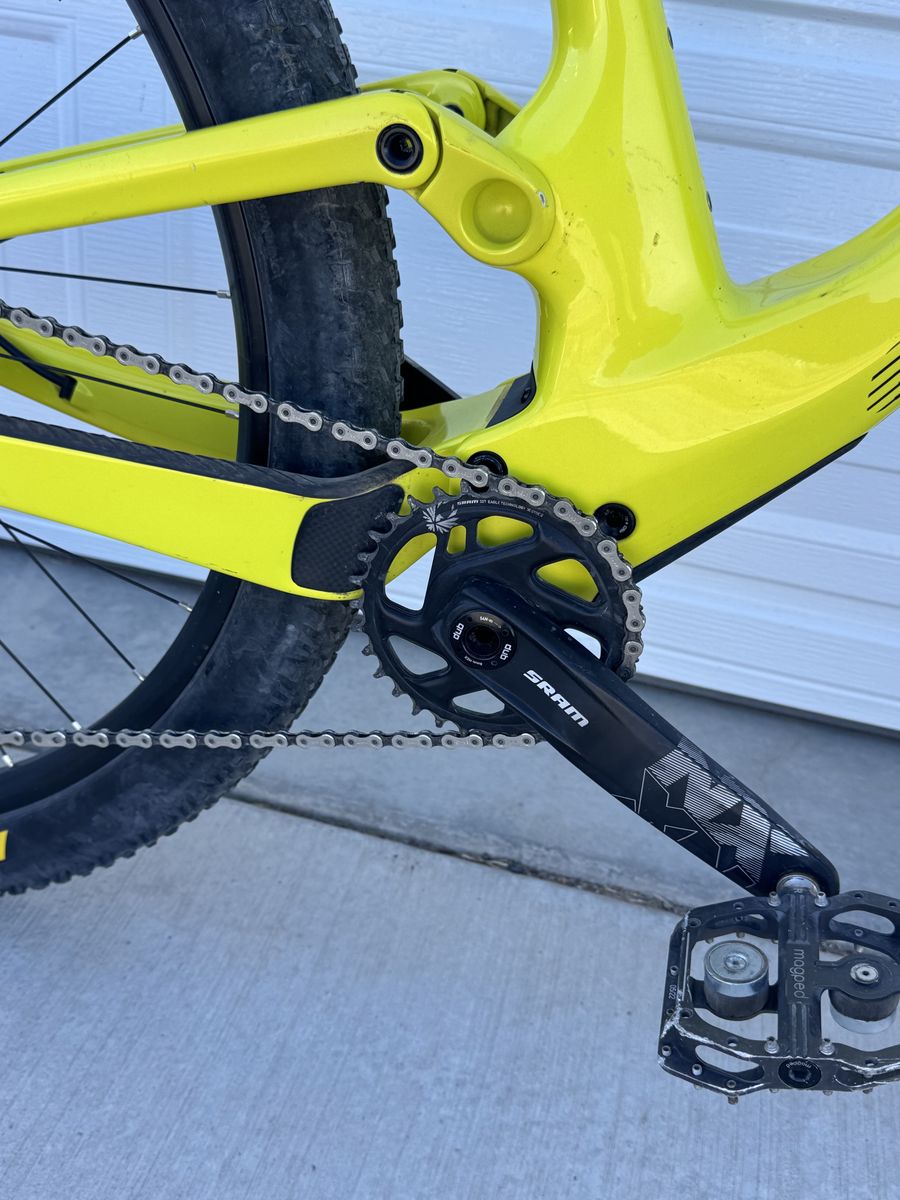 Size medium Carbon frame Sram NX drivetrain Fox 32 fork Maxxis tires that are setup tubeless