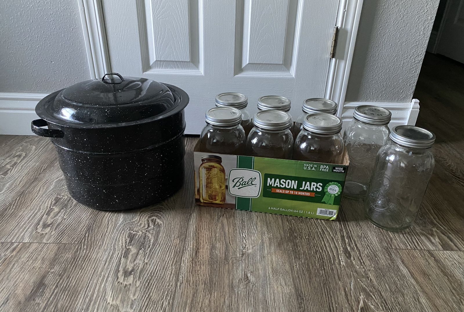 Granite Ware Canner with Lid and 8 Canning Jars with Rings and Seals