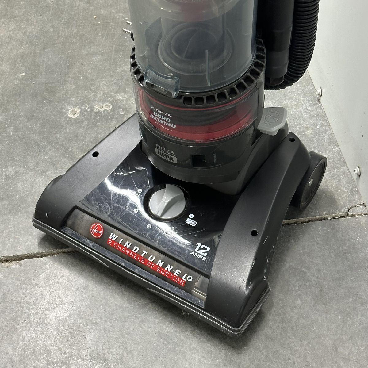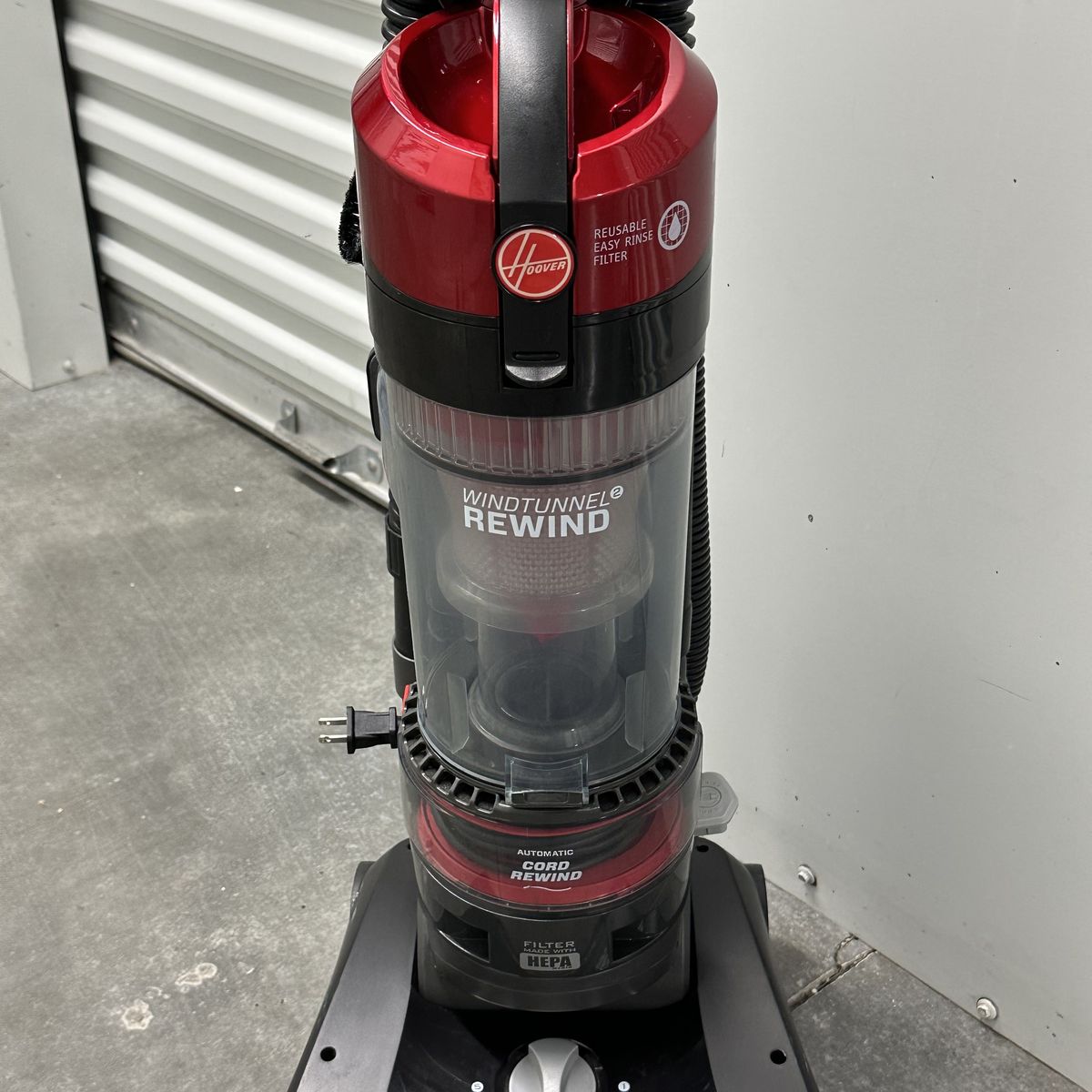 VenmoHoover Windtunnel Rewind Upright Bagless Vacuum. This vacuum has undergone a comprehensive cleaning and is in good working condition. Includes various attachments for detailing (some of the attachments are damaged).