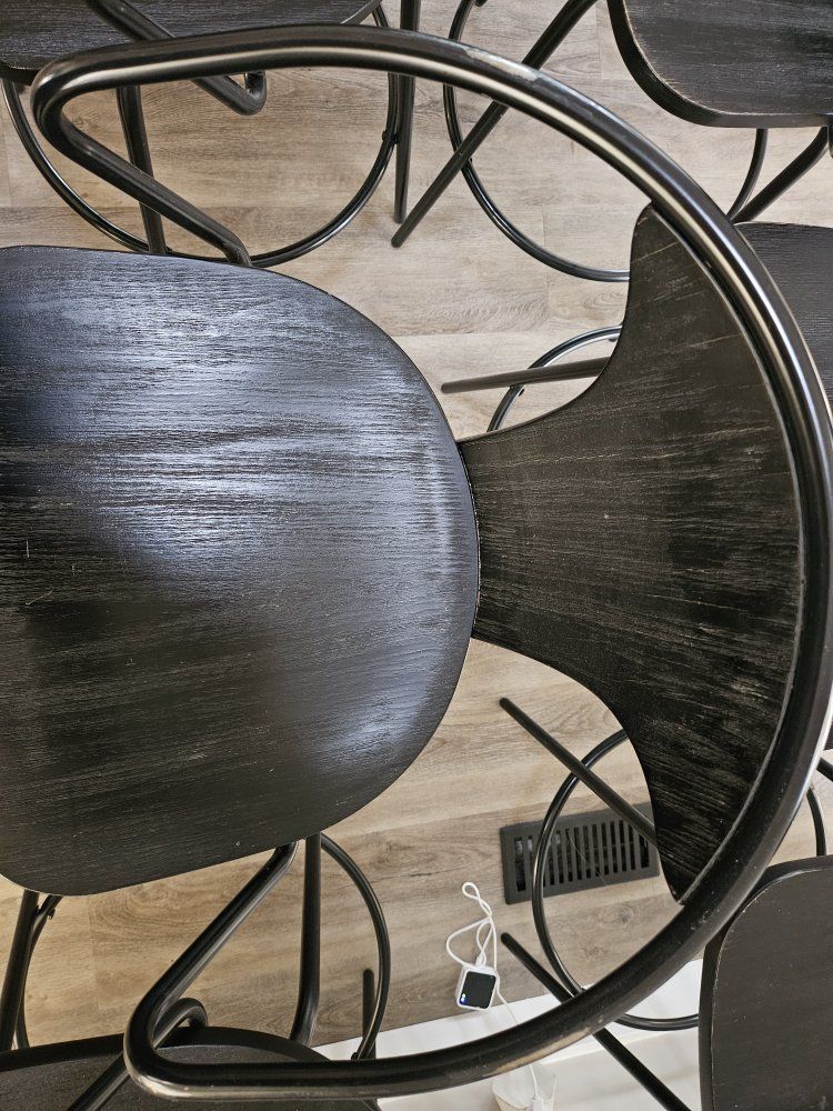 Armen 8 x black wood & metal counter-height swivel chairs. Prefer to sell all 8 together. You pick-up. CASH ONLY.