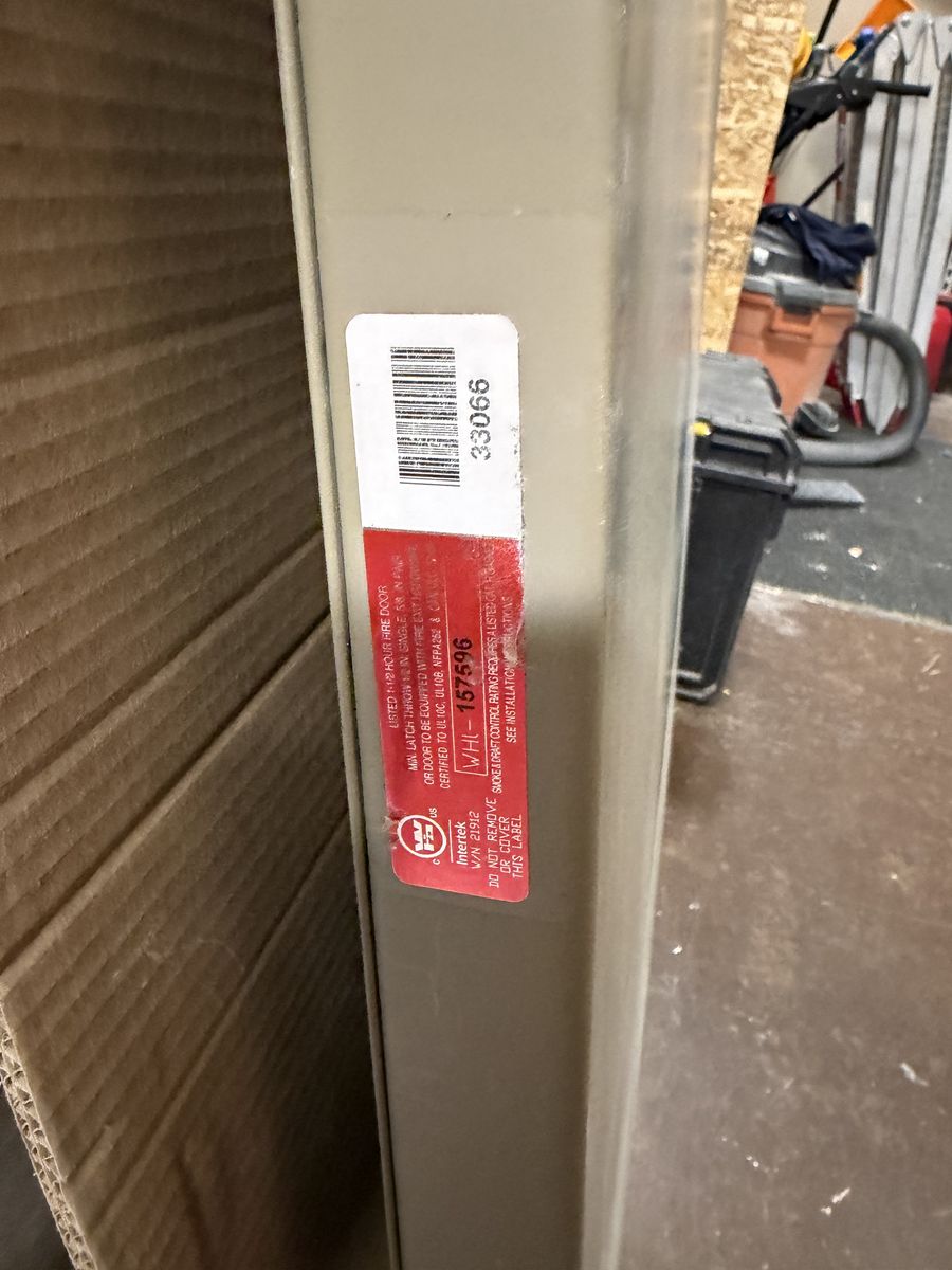 New/unused metal door meeting fire door specs.