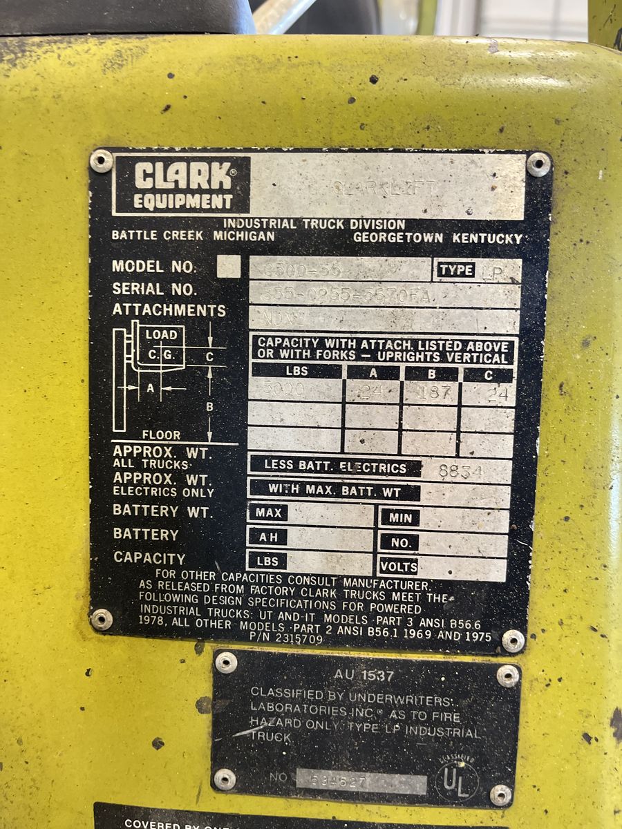 Clark Forklift C 500-55 LP New hydraulic cylinder, new front tires, runs on propane.