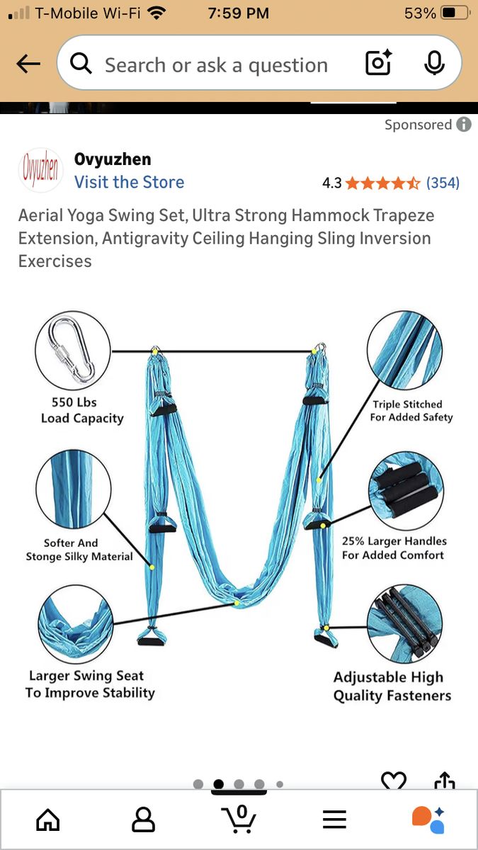 VenmoAerial Yoga Swing Set, Ultra Strong Hammock Trapeze Extension, Antigravity Ceiling Hanging Sling Inversion Exercises. Brand is- Ovyuzen. Color- sky blue. This is brand new & $40.00 on Amazon. I’m asking $20.00 cash or Venmo. Located in Sugarhouse for pick up. Text Michelle- 385-277-4469