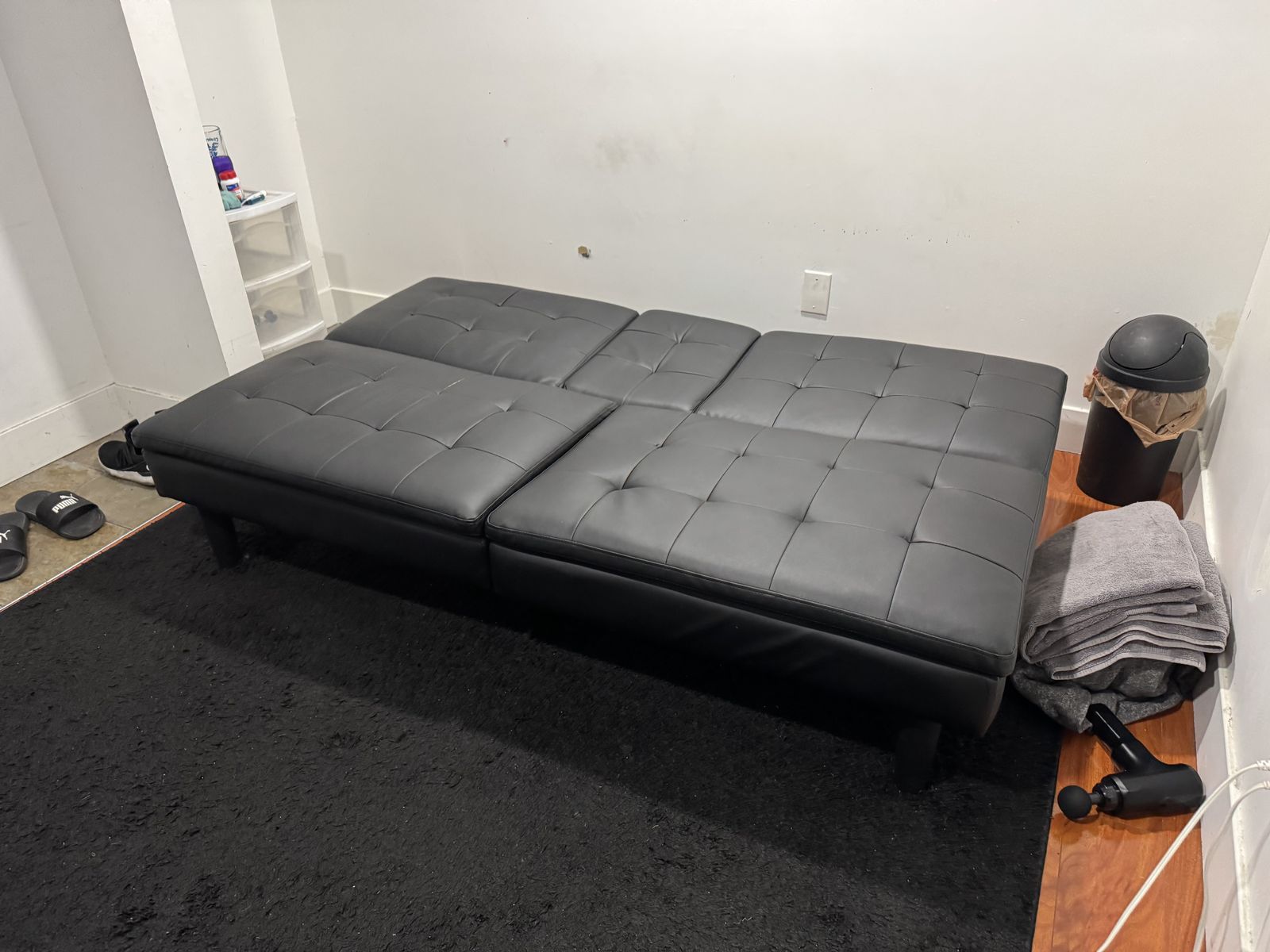 Selling because moving — must go within a few days. Comes with free storage bin! Also have a black rug for sale 7ft in length. As mentioned I will throw in a free used brown recliner! you'd be silly not to take this offer
