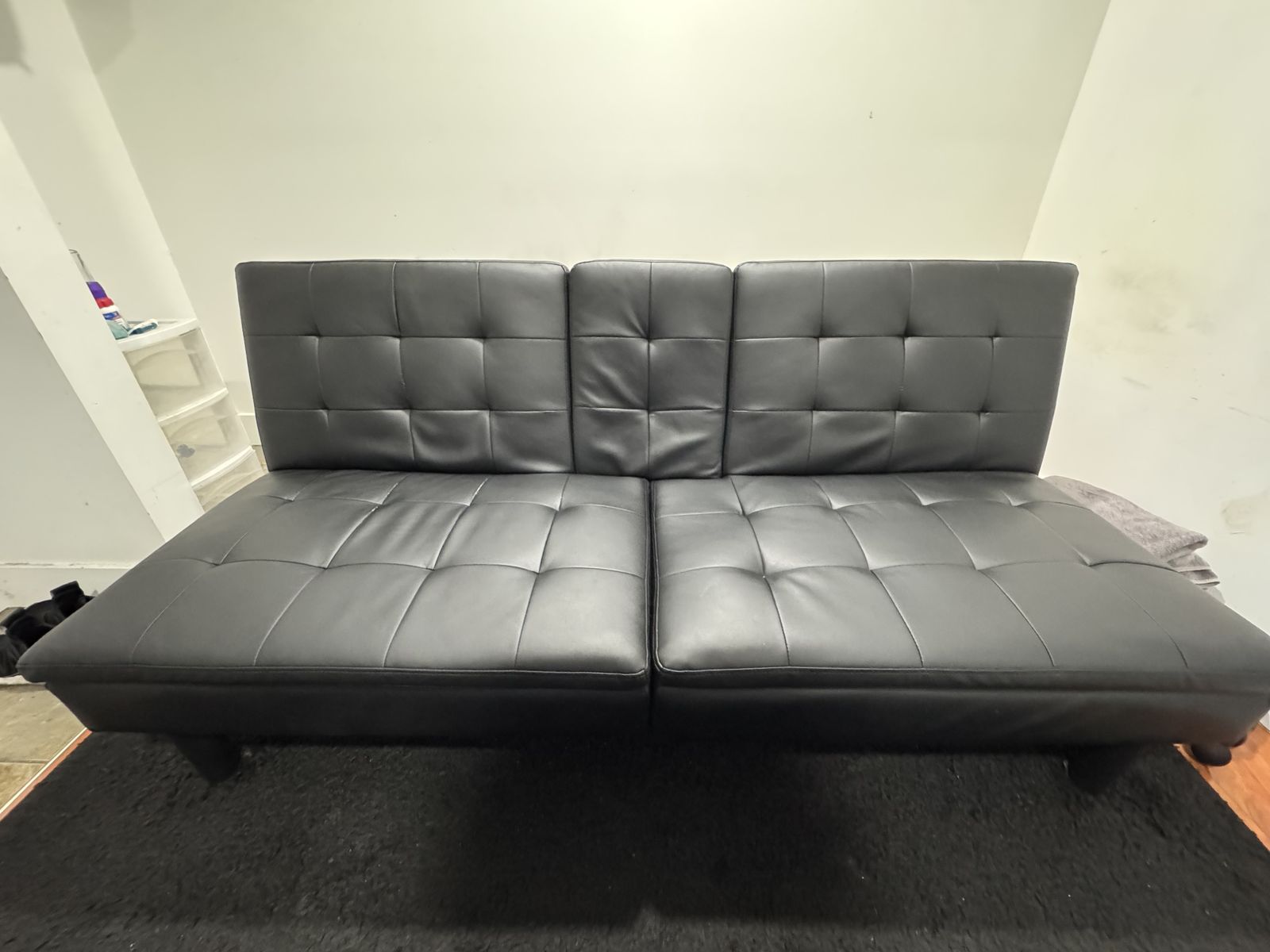 Clean black futon in good condition, folds down into a bed. Perfect for a small apartment, guest setup, or studio. Original cost was $300 brand new. You get a great price!