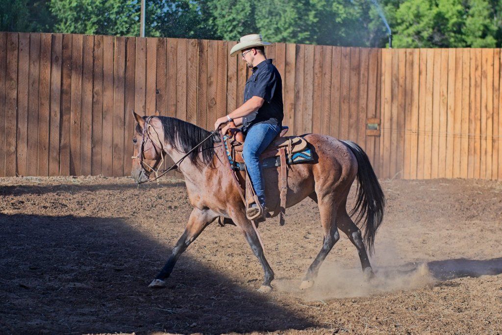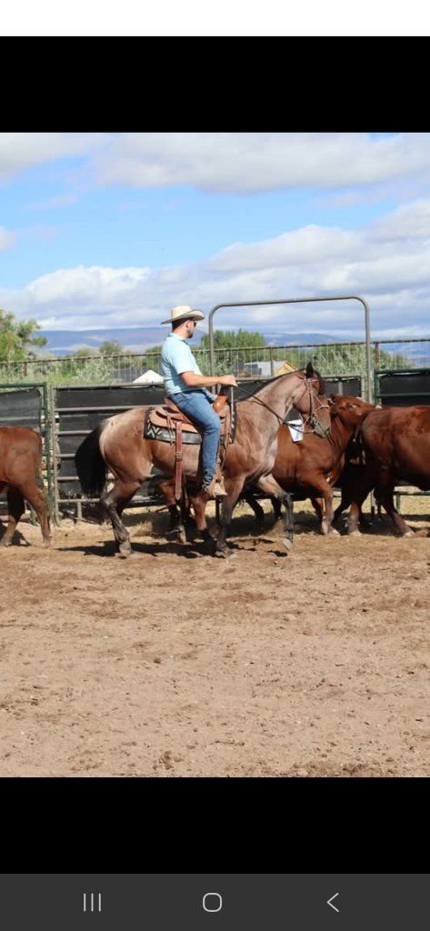 VenmoRita is a doc bar bred mare she is broke to ride woth walk trot lope. She has done some team sorting and worked cows. We have done a little bit of flag work on the pro cutter. She loves to work which is why we are selling her as I dont use her enough in my lessons since I teach a lot of beginner kids and she has a more sensitive touch to her. Shes a sweet mare and have used her for my therapy programs and she does well. She has done some trails and loads good, good with her feet, easy to catch. She's 14.3hh and up to date on everything.