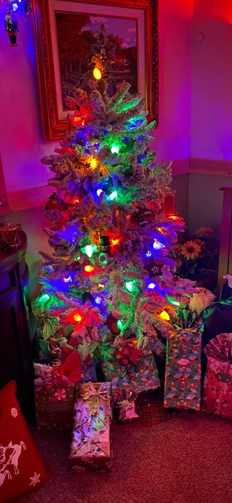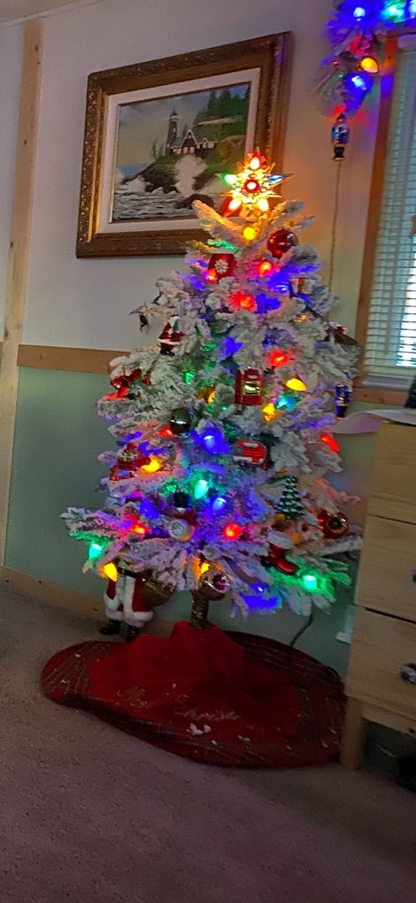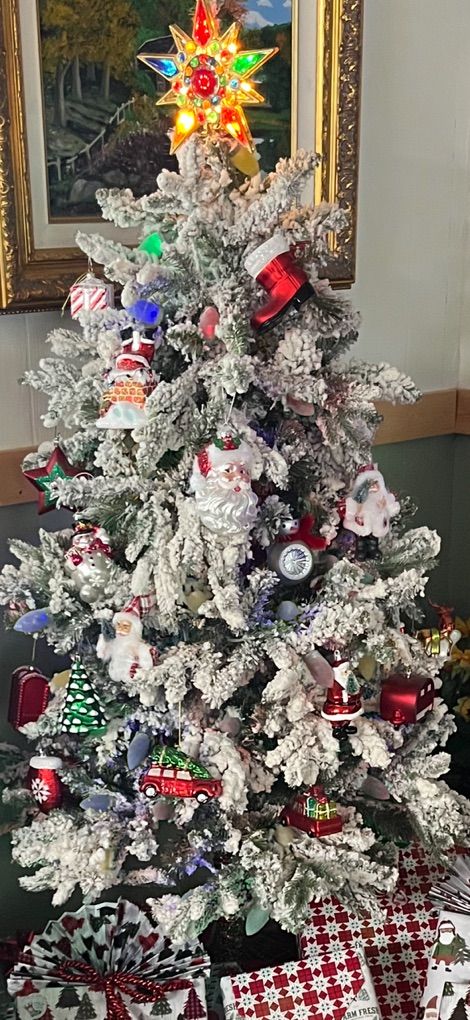 Christmas tree is about 6 ft tall. Ornaments not included.