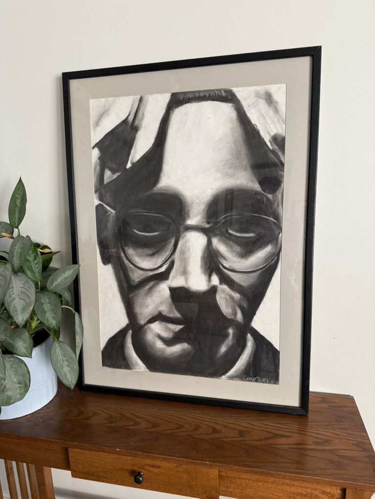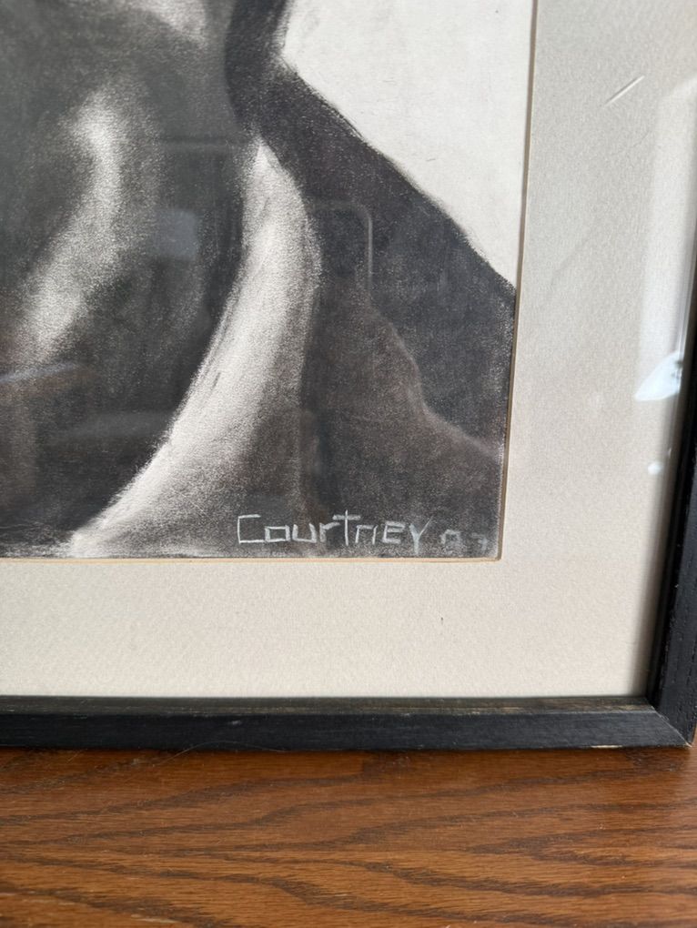 VenmoVery unique original charcoal portrait by Courtney Parsons. Dimensions: 28” W x 38-1/2” H. Frame has small signs of wear. Overall good condition.