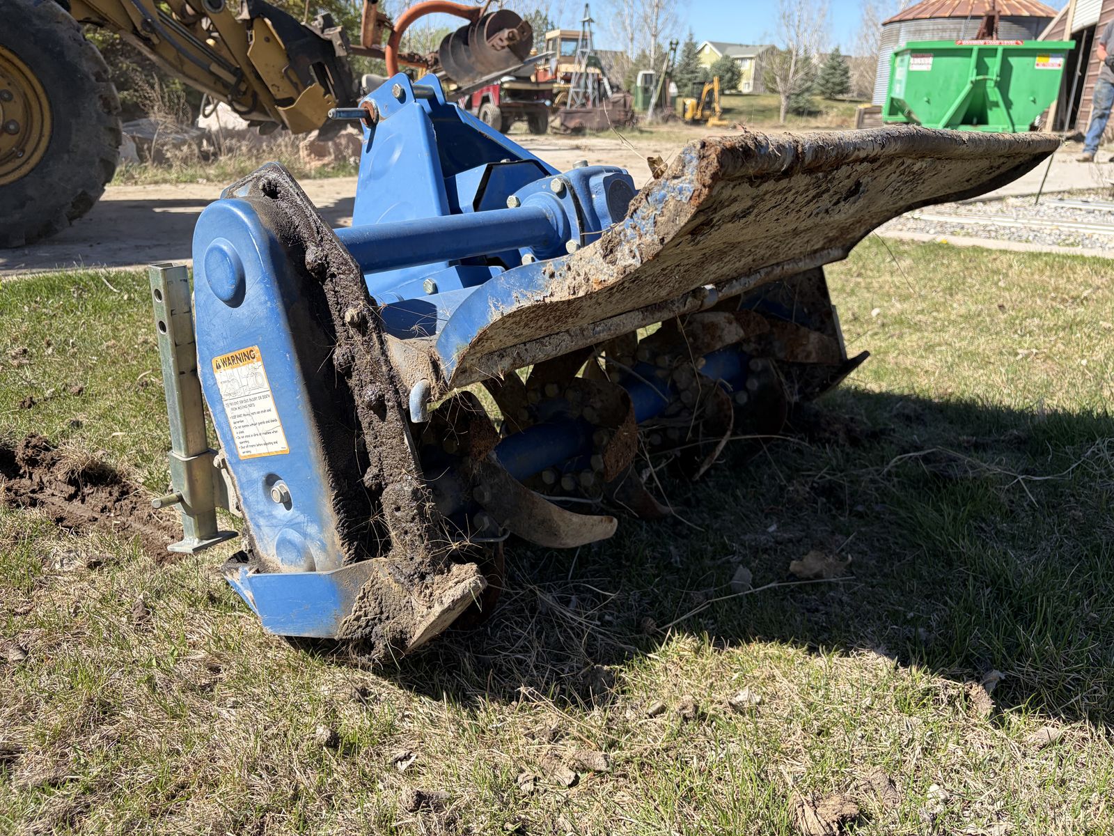 Heavy-duty 3-point hitch rotary tiller for compact tractors. PTO-driven and includes driveline.