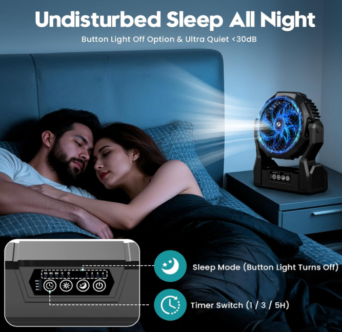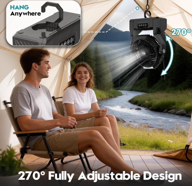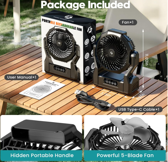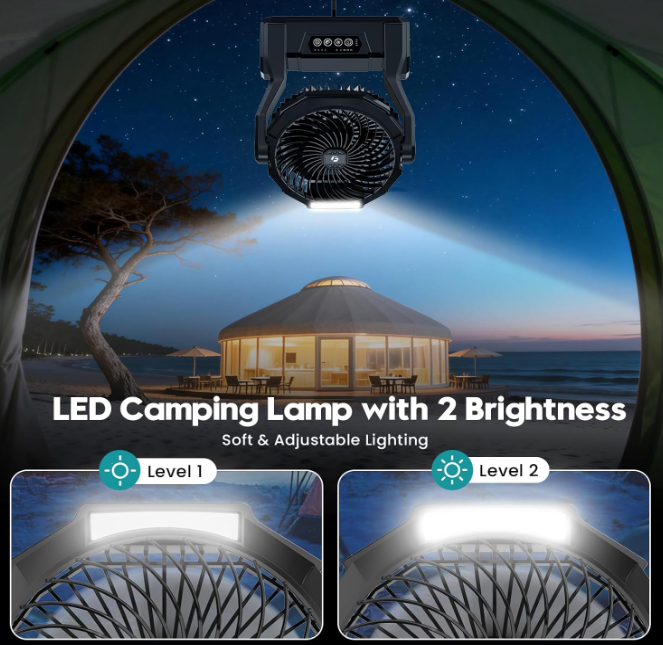 Zelle3-in-1 Multi-Purpose Outdoor FanThis compact unit combines a cooling fan, LED lantern, and emergency power bank. The dual-level LED light offers dependable brightness for nighttime use, while the USB output lets you charge phones, GPS devices, or other essentials during outdoor trips or emergencies.