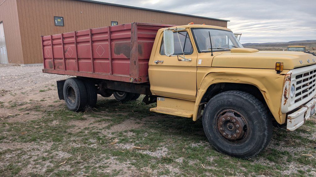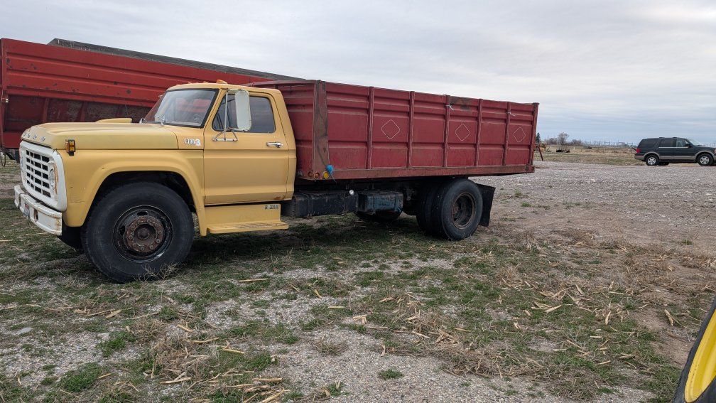 GooglePay1974 Ford Dump truck. runs well, gas motor, scissor lift bed with high (grain) sides.