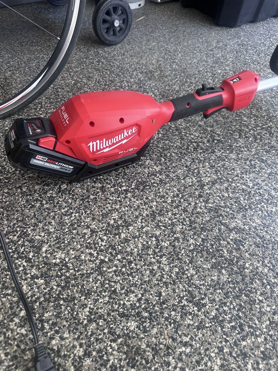 Milwaukee M18 FUEL 18V 16 in. Brushless Cordless Battery Powered String Trimmer w/QUIK-LOK Attachment Capability & 8.0 Ah Battery used one summer but live in a townhouse now so no need for it. Sells for $329.95 brand new at Home Depot.