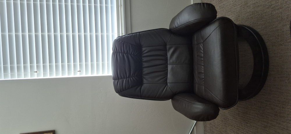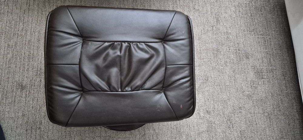 PayPalBrown leather recliner, what footstool. it's in good condition no tears.