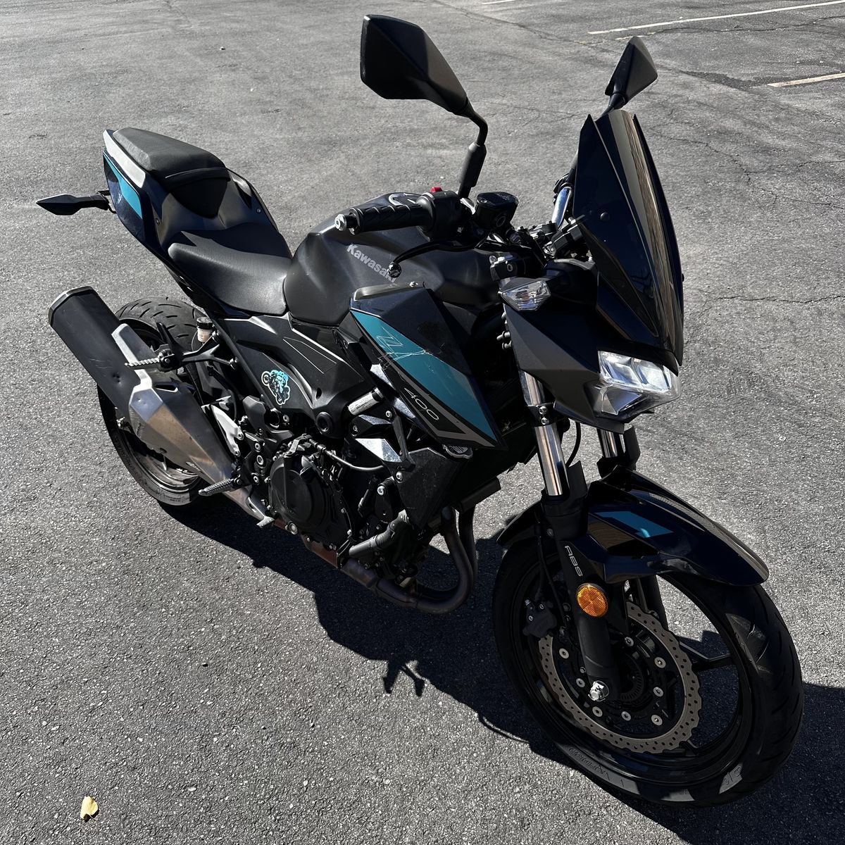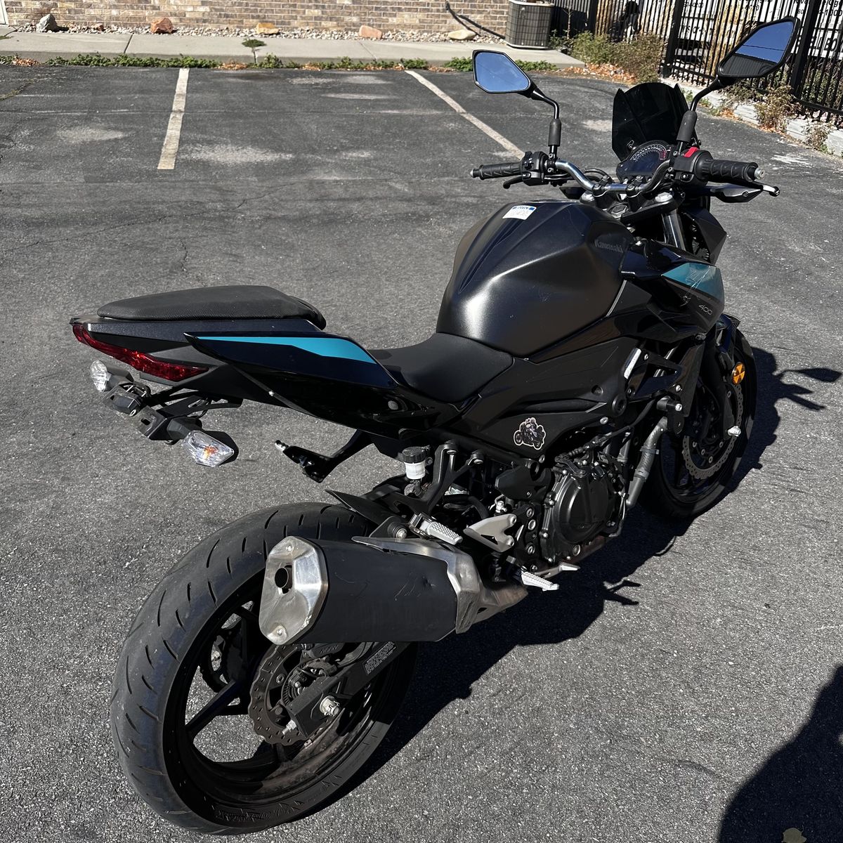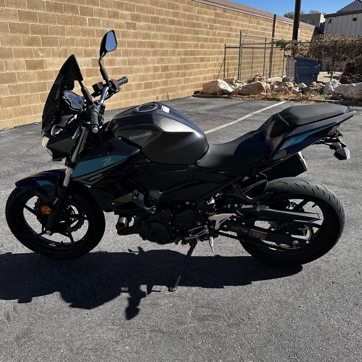 HERE IS YOUR ANSWER TO THE HIGH GAS PRICES! GETS AROUND 60 MPG! The 2023 Kawasaki Z400 ABS is powered by a 399 cc liquid-cooled two-cylinder engine giving you solid mid-range pull in a nimble streetfighter setup. It comes equipped with ABS, assist & slipper clutch, a high-tensile steel trellis frame, and sporty suspension with a 41 mm telescopic fork up front and Uni-Trak swingarm rear. Its agile chassis, relatively light curb weight, and aggressive naked styling make it a confident choice for carving through traffic or enjoying twisty roads. Best suited for beginner to intermediate riders who want exciting performance with manageable power, strong handling, and modern features without the intimidation of a bigger bike. ONLY 5,900 MILES and a clean title!