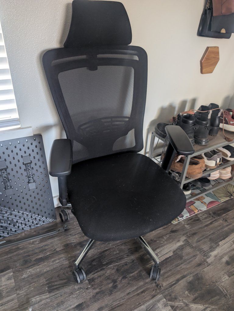 Great chair in great shape. Super comfortable for long periods of desk work.
