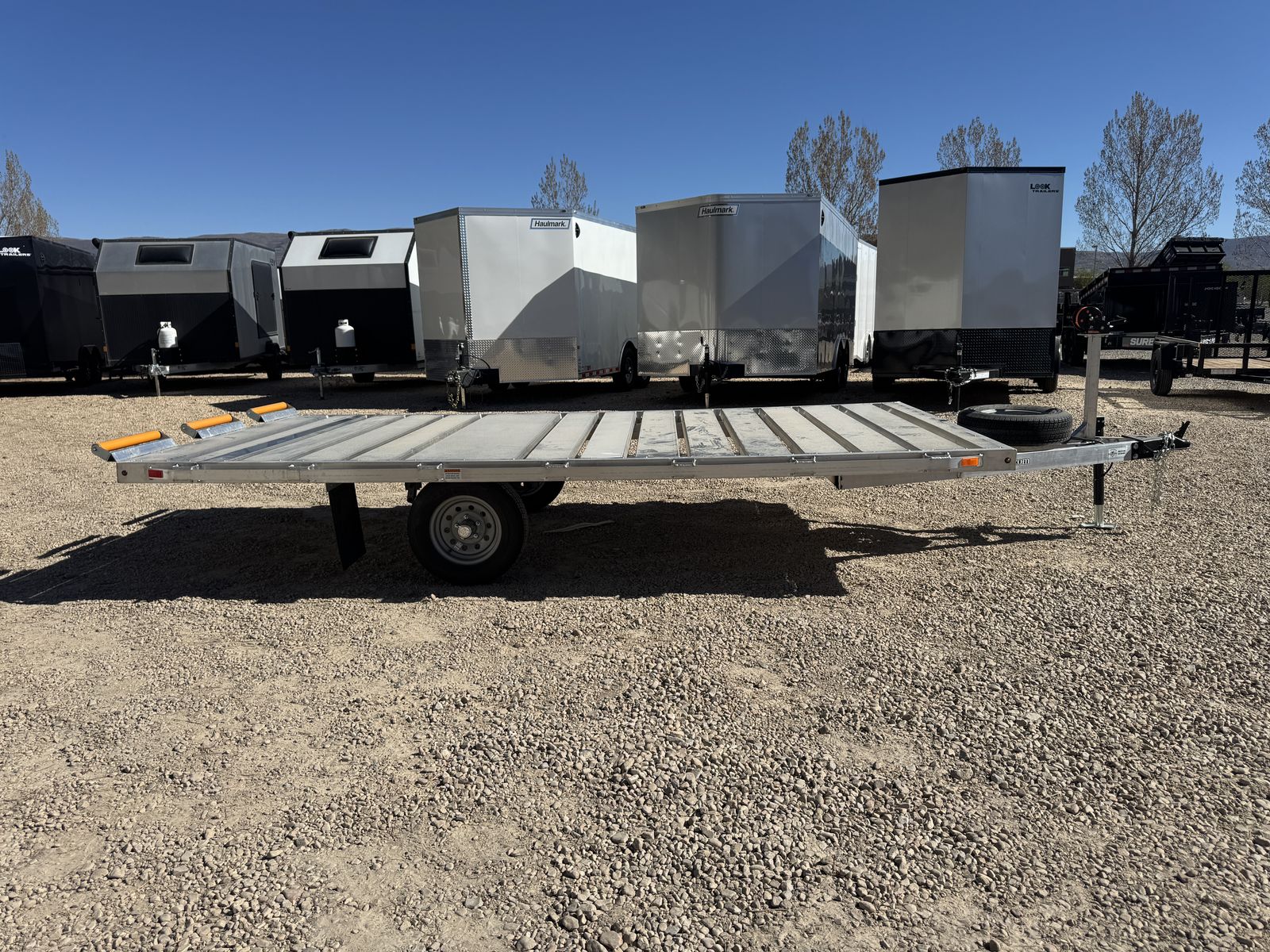 Our Whitewater trailer is a great light weight aluminum deck over the tires trailer for hauling rafts or anything light weight that fenders may get in the way of loading.