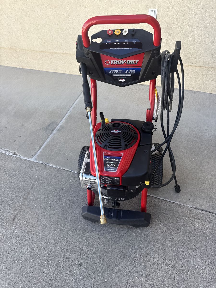 VenmoTroy-Built 2800 PSI sprayer with Briggs&Stratton 8.5 hp engine. Hooked it up turned it on and it works great. Starts with one pull, sprays strong with no leaks.